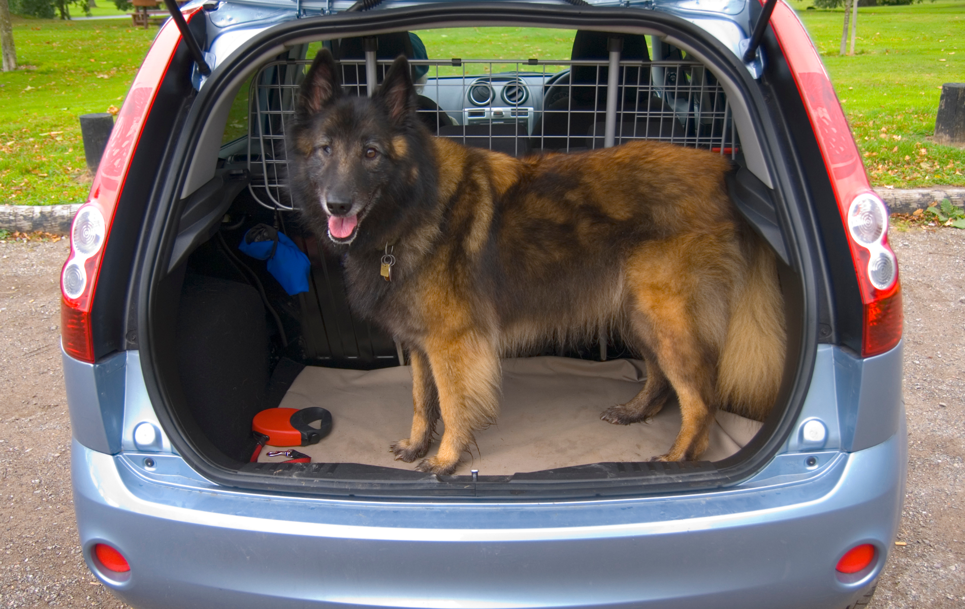Si el perro es mediano o grande, por ejemplo un pastor alemán, es imposible que viaje en un transportín en el habitáculo y habrá que ponerlo en el maletero en una jaula de su tamaño o también puede ir suelto.