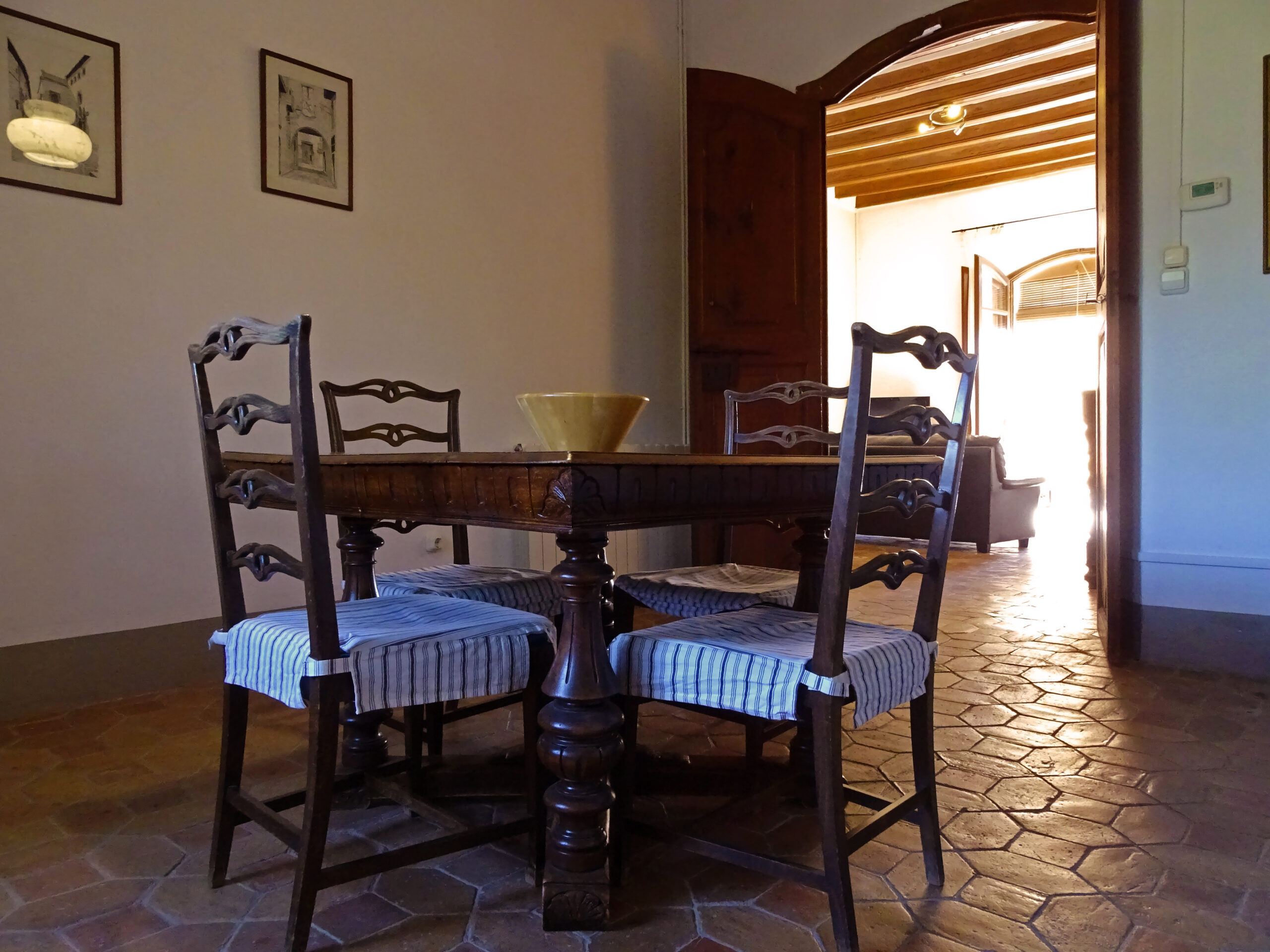 La casa, un edificio de tres plantas con una superficie útil de 365 m2 y techos de 3,8 m de altura, tiene capacidad para albergar de 11 a 15 personas. Está equipada con una cuna, 4 baños y un aseo (todos con secador de pelo), una cocina totalmente equipada con microondas, horno eléctrico, nevera, lavavajillas, lavadora, secadora y otros utensilios de cocina. Además, dispone de un comedor, tres salas de estar (una de 41 m2 y las otras dos de 26 m2) y seis habitaciones, tres de ellas con alcoba de 24 m2 cada una, con vistas a la Plaza de Jaume el Just o a las viñas. Todas las camas son de 90×1,90 metros, excepto una de 1,50 metros, y toda la ropa es blanca y de algodón.