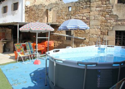 Además, posee zona de aparcamiento, una huerta y un amplio jardín con mobiliario (mesas, sillas, tumbonas y barbacoa)