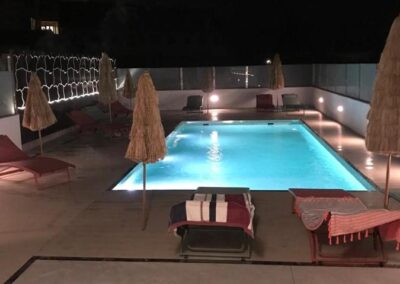 Para un máximo de 6 personas, cuenta con 3 dormitorios, 2 baños una cocina completa, salón y una terraza. También dispone de una piscina comunitaria. Posibilidad de plaza de garaje por 7 € diarios.