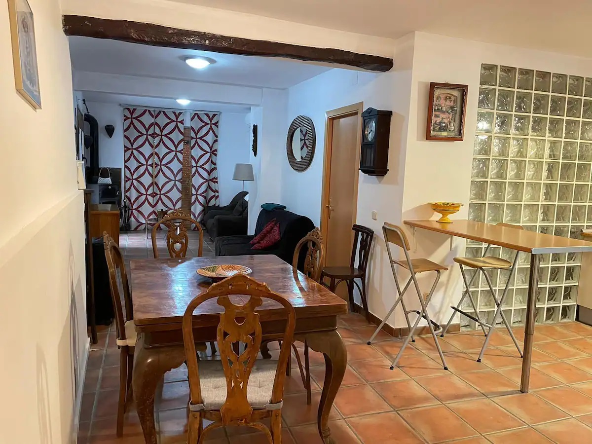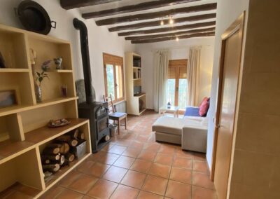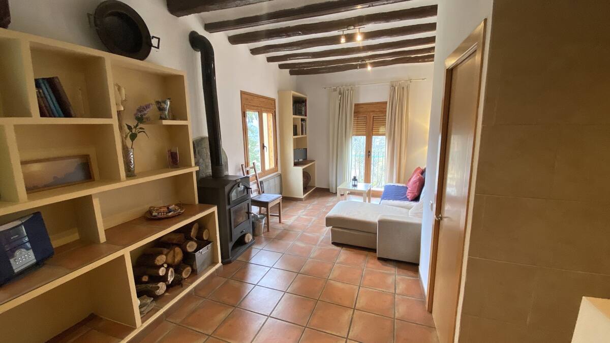 En el salón, se dispone de una estufa de leña con rejilla adaptable para realizar barbacoas, lo que añade un toque acogedor y la posibilidad de disfrutar de momentos únicos en compañía.