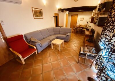 El salón está provisto de una acogedora chimenea de leña con rejilla adaptable para hacer barbacoas, ideal para disfrutar de momentos de calor y diversión en cualquier época del año.