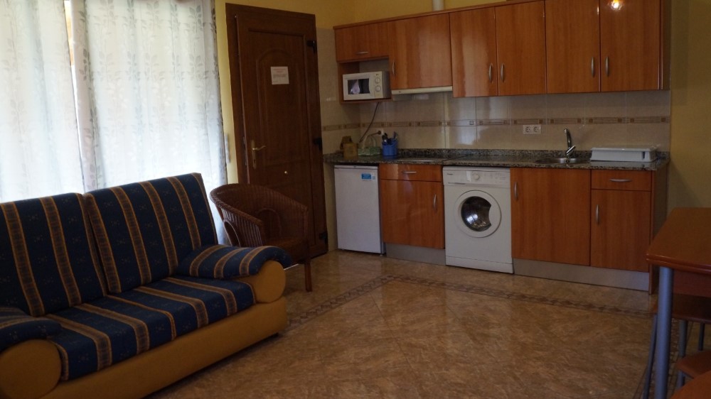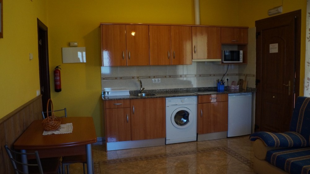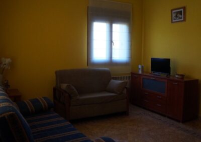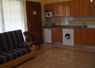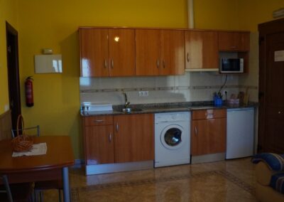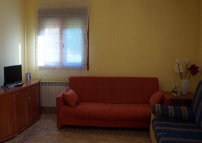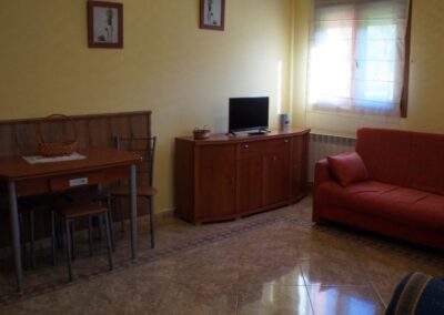 Cada apartamento está diseñado para alojar cómodamente a 4 personas, con dos dormitorios (uno con cama de matrimonio y otro con dos camas individuales), un baño completo, y una práctica distribución que combina funcionalidad y encanto rural. El salón-comedor, acogedor y luminoso, dispone de televisión, calefacción, mientras que la cocina está totalmente equipada con vitrocerámica, microondas, nevera, tostadora, batidora y lavadora, para que no te falte de nada durante tu estancia.