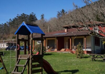 El entorno exterior es otro de sus grandes atractivos. Disfruta del aire libre en su jardín con barbacoa, ideal para comidas al sol o cenas bajo las estrellas, relájate en el porche cubierto o deja que los más pequeños se diviertan en la zona infantil. Además, cuenta con aparcamiento privado, garantizando total comodidad desde tu llegada.