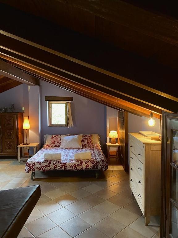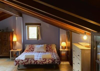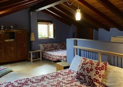 • Se puede alquilar de forma íntegra y ofrece capacidad para alojar cómodamente entre 8 y 9 personas, siendo ideal para familias o grupos que buscan tranquilidad y un entorno auténtico. Dispone de 3 habitaciones amplias y cuidadosamente decoradas, dos de ellas con cama de matrimonio, y una habitación abuhardillada que combina una cama de matrimonio y tres camas individuales, con la posibilidad de redistribuir una de ellas en la primera planta según las necesidades del grupo.