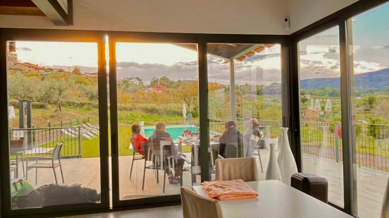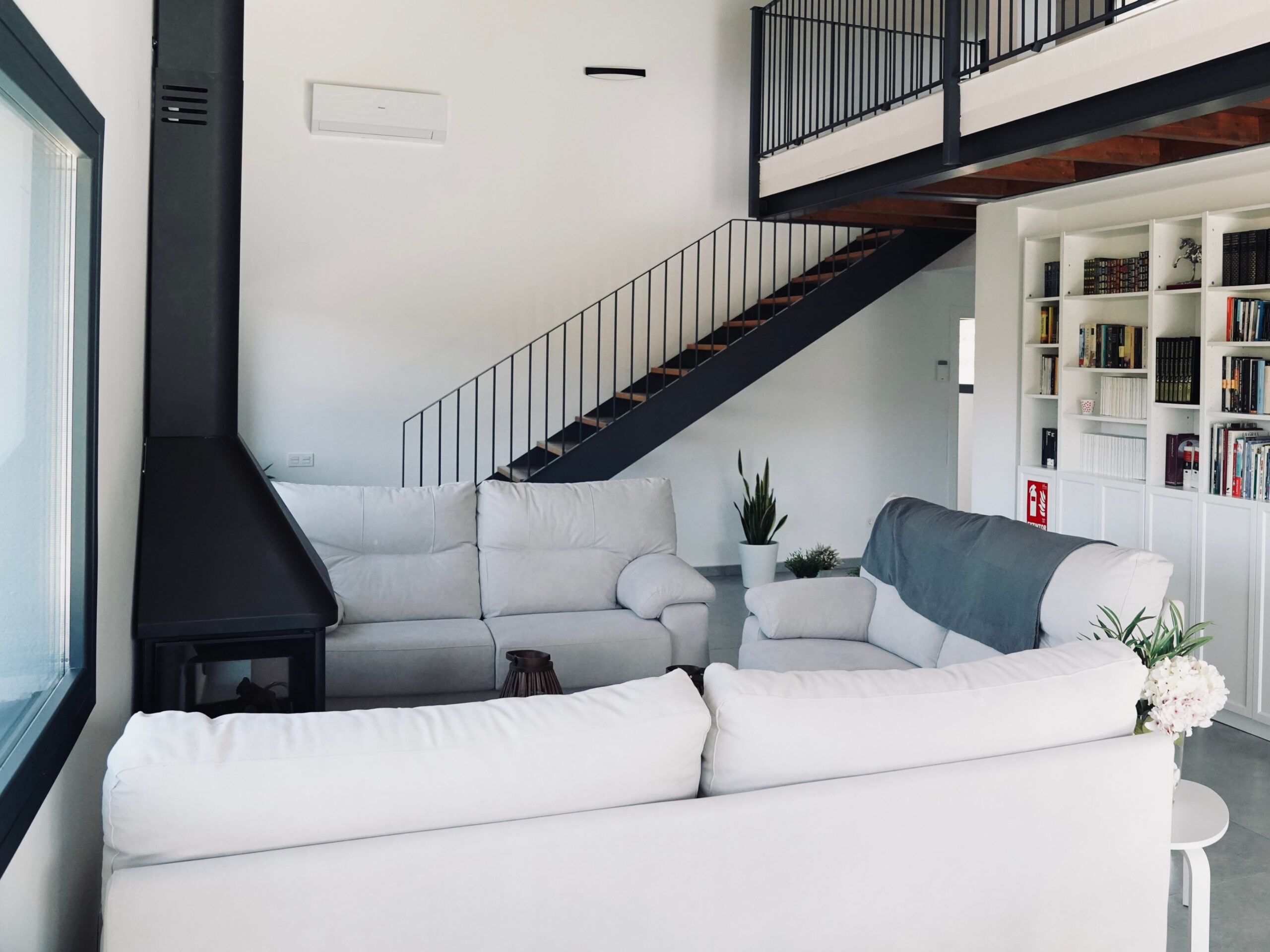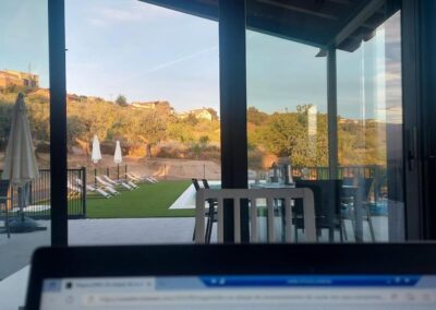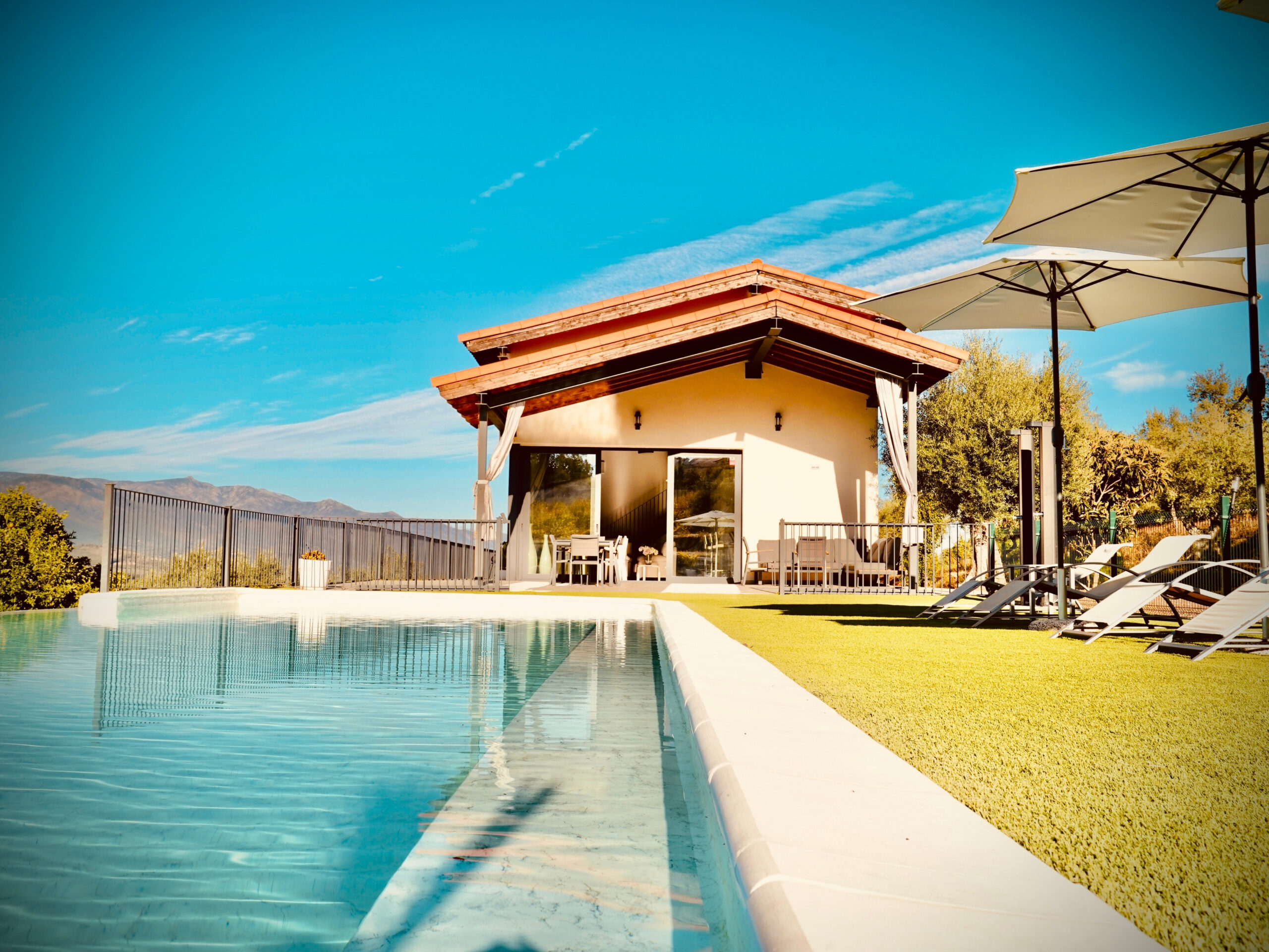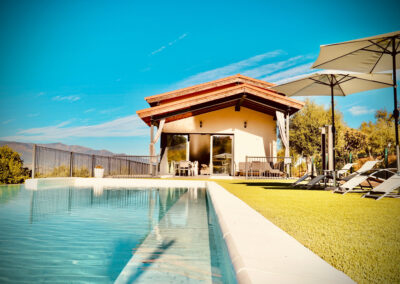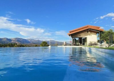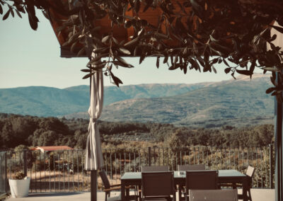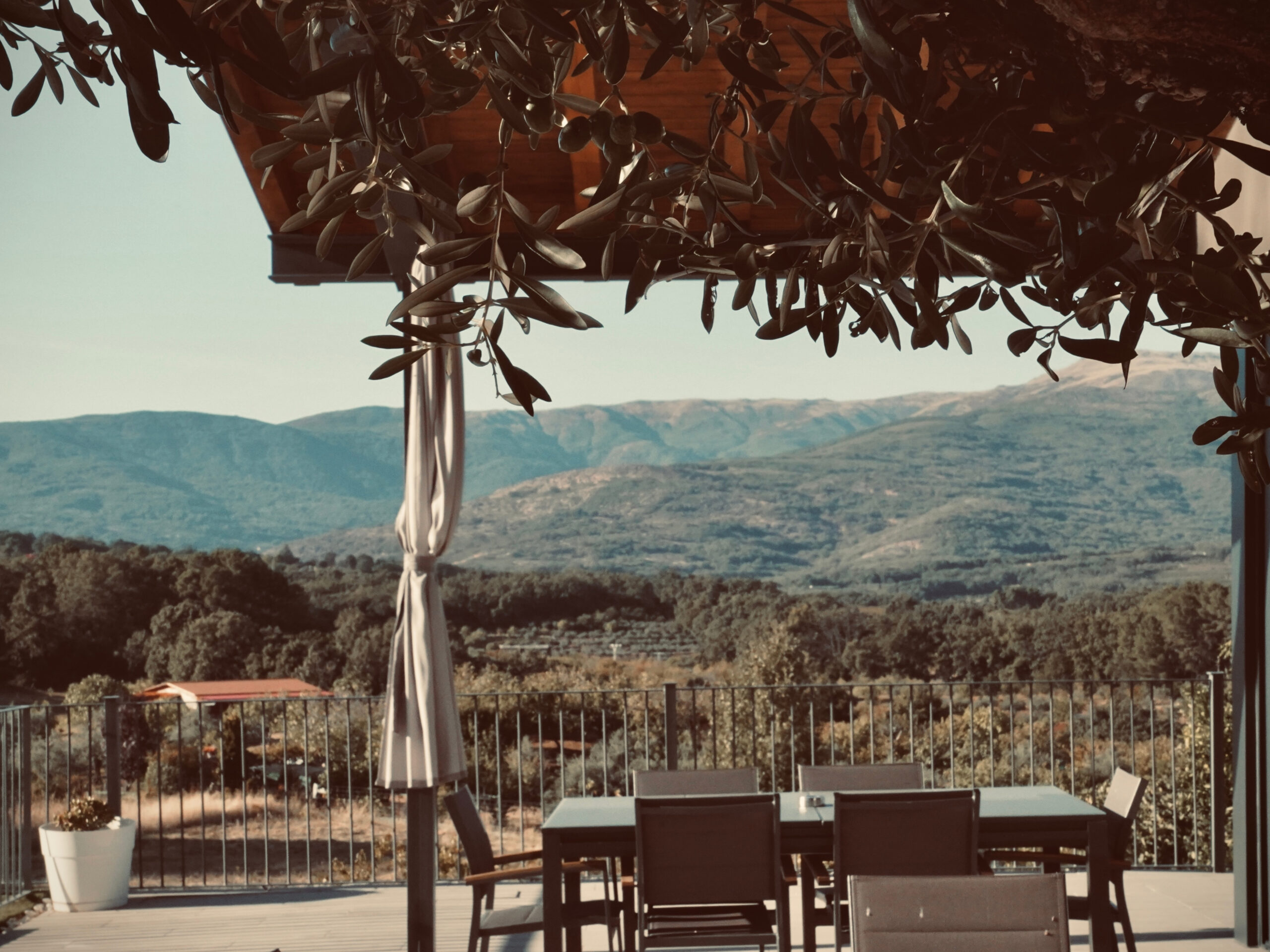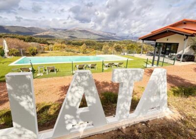 En el exterior, Casa Atalanta destaca por su espectacular piscina infinita, que ofrece un baño relajante con vistas a Gredos. Un porche cubierto de grandes dimensiones, equipado con sofás y mesas, es el lugar perfecto para disfrutar de desayunos al aire libre o largas sobremesas. También encontrarás una terraza de 80 m² con sillones y mesitas para contemplar las puestas de sol y disfrutar de noches estrelladas.