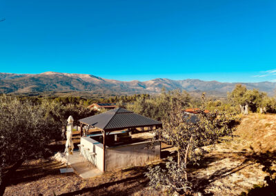 Las cuatro habitaciones de la casa destacan por su amplitud y luminosidad, cada una con baño completo, aire acondicionado y agua caliente independiente. Tres de las habitaciones ofrecen la posibilidad de añadir una cama supletoria, adaptándose a las necesidades de grupos más numerosos. Todas las habitaciones están ubicadas en la planta baja, sin barreras arquitectónicas, lo que garantiza un acceso cómodo para cualquier circunstancia. Desde ellas, se puede disfrutar de impresionantes vistas a las montañas y al Monasterio de Yuste.