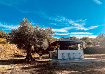 Además, la casa cuenta con un chiringuito cubierto de 25 m² con barbacoa de gas, nevera-botellero, fregadero y alacena equipada con todo lo necesario. Para mayor comodidad, esta zona dispone de un aseo, evitando desplazamientos innecesarios a la casa.