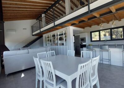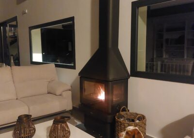 En el interior, el alojamiento cuenta con una zona común que incluye un salón de 50 m² con chimenea, perfecto para disfrutar de los días de invierno mientras observas el paisaje. La cocina americana integrada facilita las reuniones en un ambiente cálido y funcional. La casa dispone de aire acondicionado en todas sus estancias, asegurando el confort durante todo el año. En la planta superior, se encuentra una zona de ocio especialmente diseñada para disfrutar de juegos de mesa y una televisión de grandes dimensiones, además de contar con Wi-Fi de alta velocidad para trabajar o entretenerse.