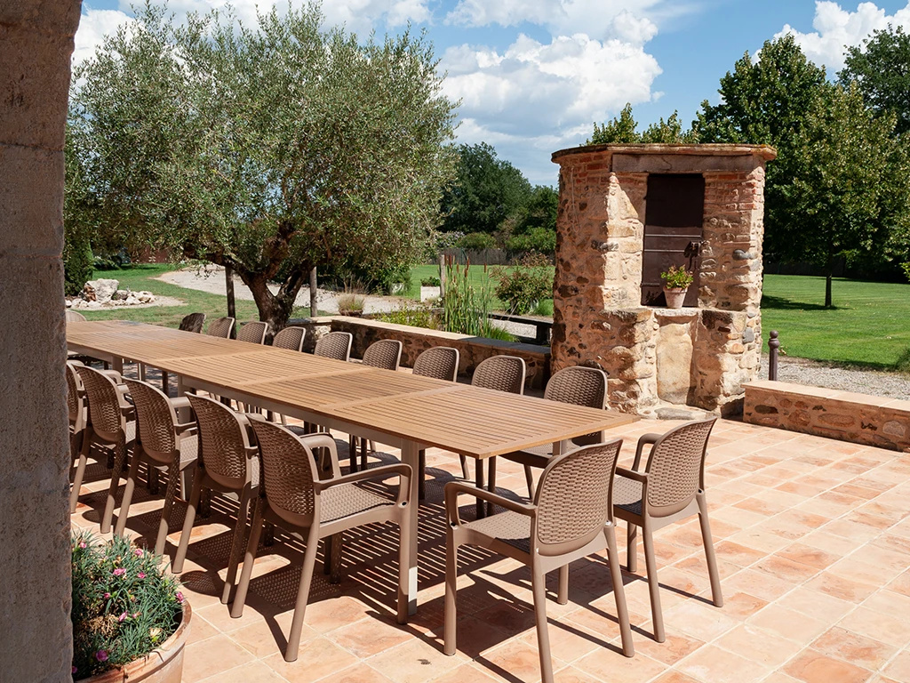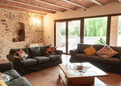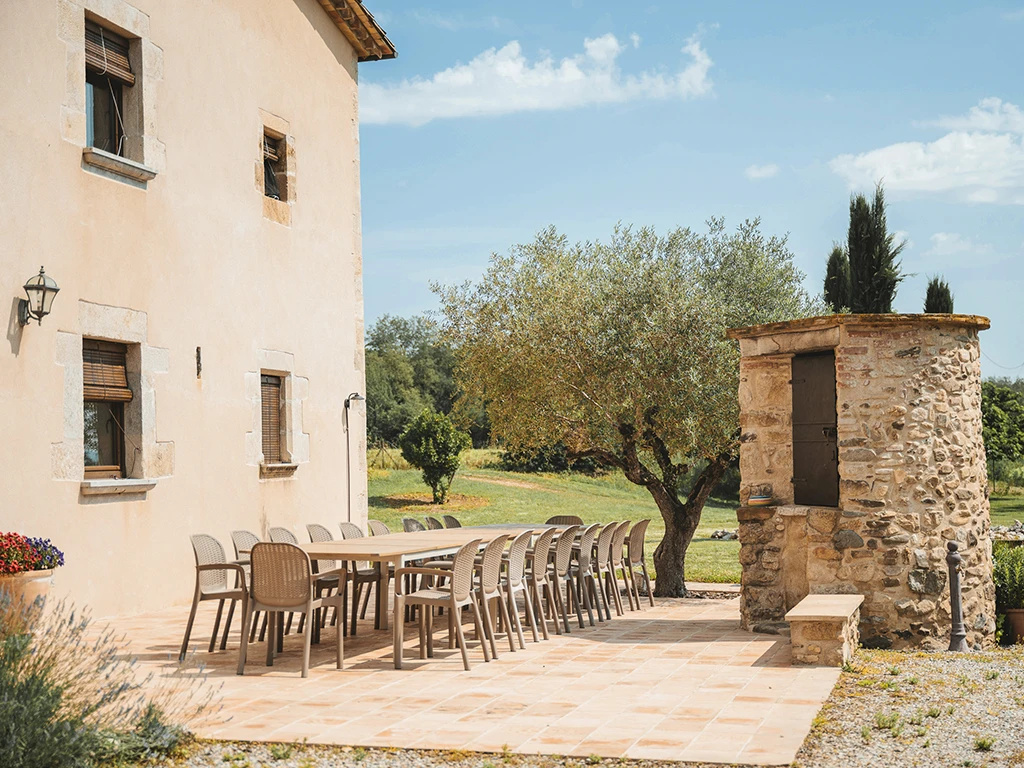 Ca n’Oller es una masía rural de gran capacidad situada en Brunyola, en la provincia de Girona, rodeada de campos, jardines y paisaje agrícola que invitan al descanso y a la desconexión. Este alojamiento singular combina la esencia de la arquitectura tradicional catalana con un alto nivel de confort, ofreciendo un espacio ideal para reuniones familiares, estancias con amigos o escapadas en grupo donde compartir tiempo de calidad en plena armonía con el entorno.