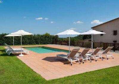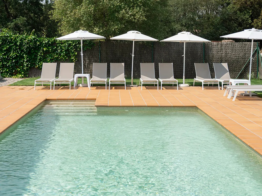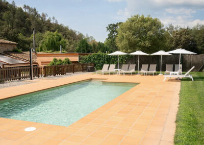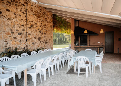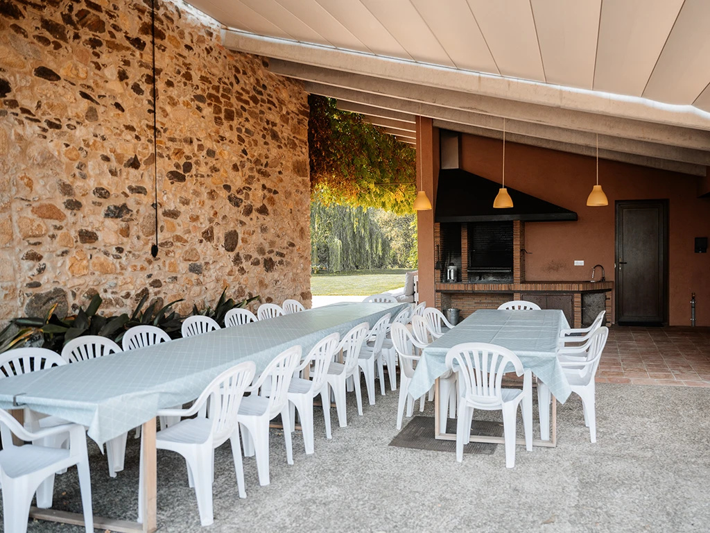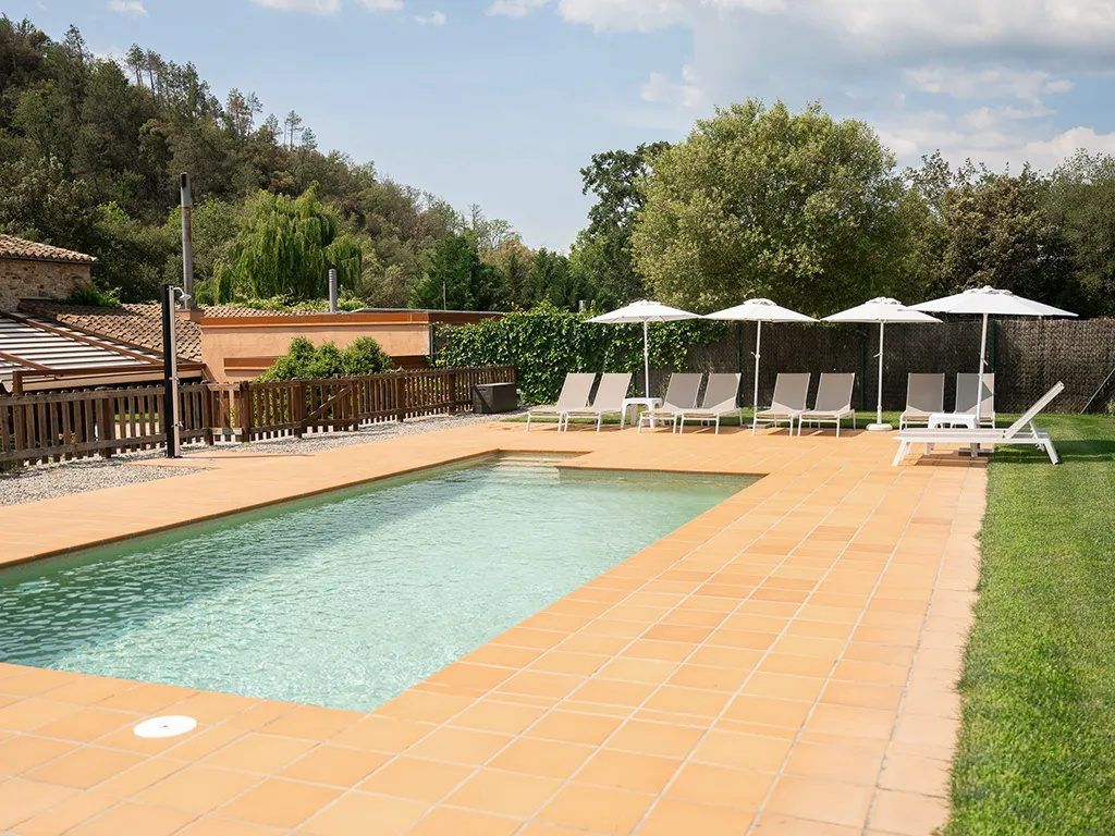 La masía dispone de una piscina exterior de agua ligeramente salada, completamente vallada para mayor seguridad, ideal para refrescarse durante los días de verano. Junto a ella se encuentra la zona de barbacoa cubierta, equipada con parrilla argentina y barbacoa de gas, lo que permite disfrutar de comidas y cenas al aire libre durante todo el año, independientemente del clima.