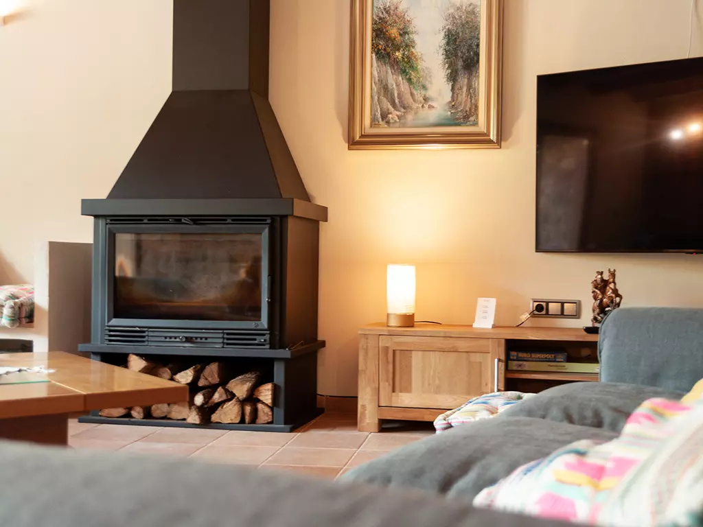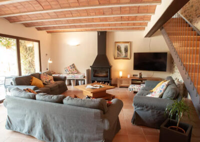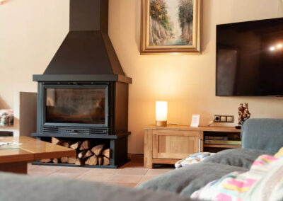 Las zonas comunes interiores están pensadas para disfrutar de cada momento del día. El salón principal, ubicado en la planta baja, dispone de chimenea, cómodos sofás y televisión de gran formato, convirtiéndose en un espacio ideal para la conversación, el descanso o sesiones de cine en grupo.
