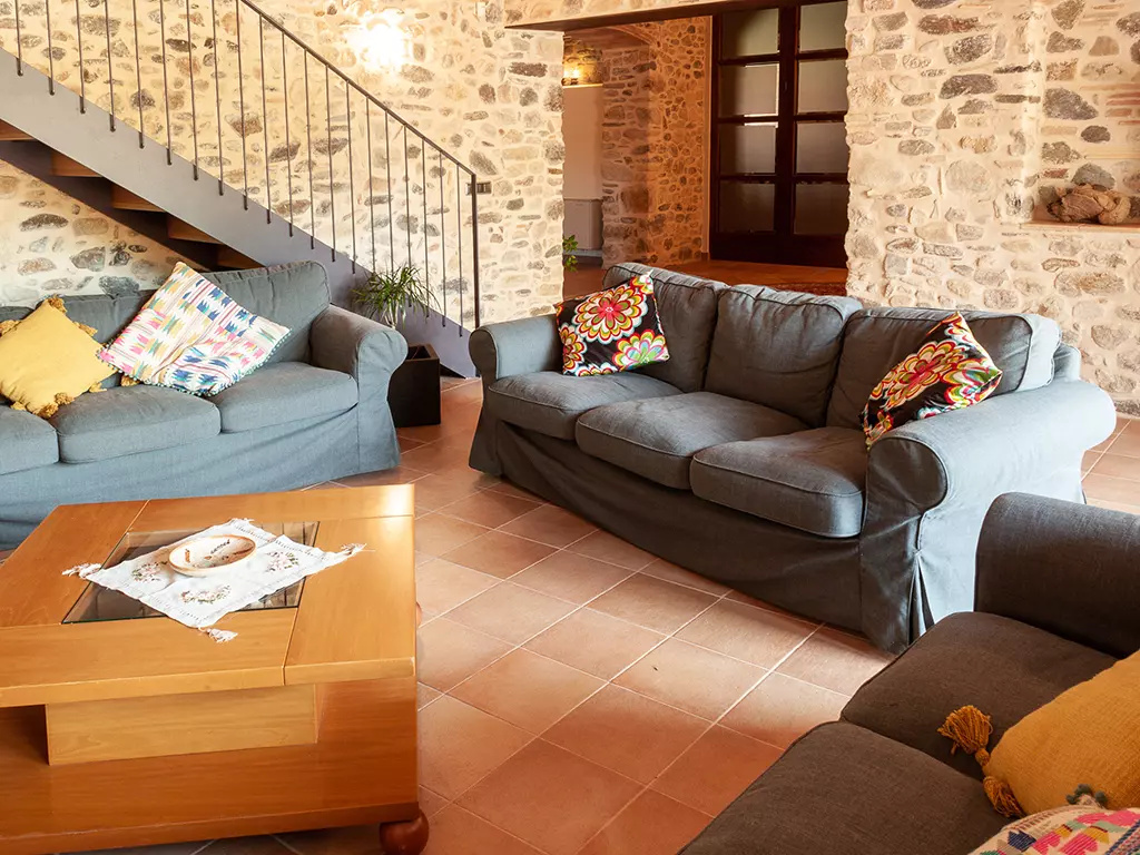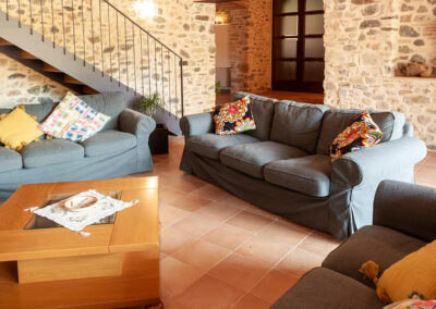 La masía ofrece capacidad para hasta 20 personas, con una distribución equilibrada que permite disfrutar tanto de amplias zonas comunes como de espacios privados para el descanso. La vivienda se organiza en planta baja y primera planta, facilitando la convivencia de grupos numerosos sin renunciar a la comodidad. Entre sus estancias destaca la presencia de una habitación adaptada para personas con movilidad reducida, ubicada en la planta baja y diseñada para garantizar una estancia segura y confortable.