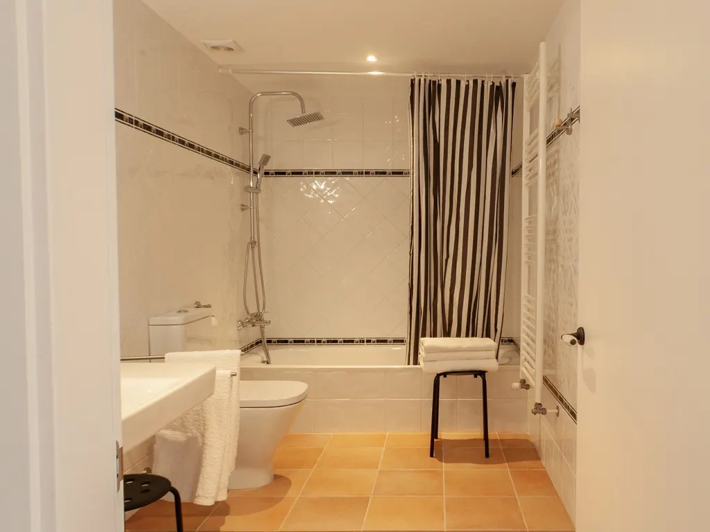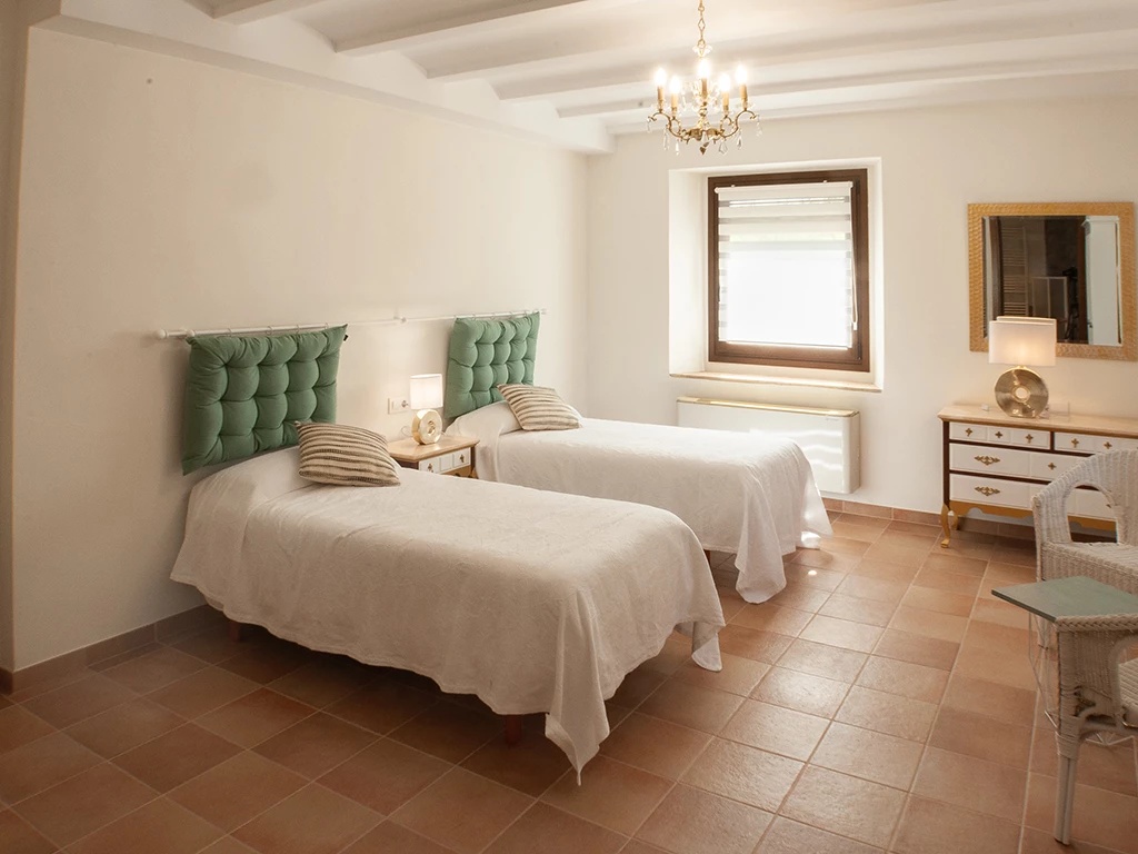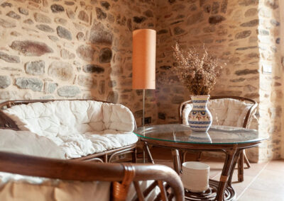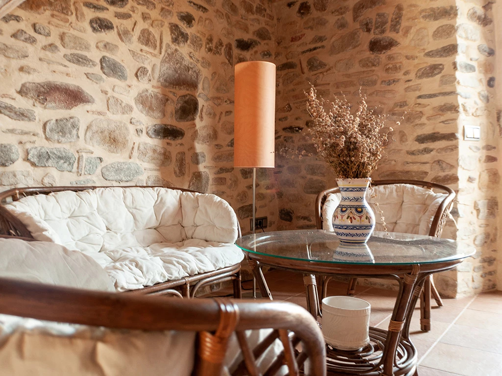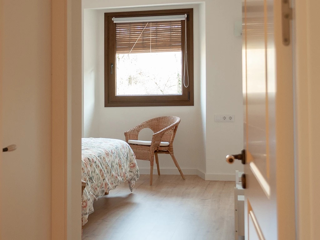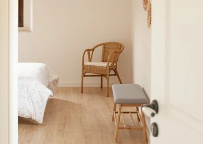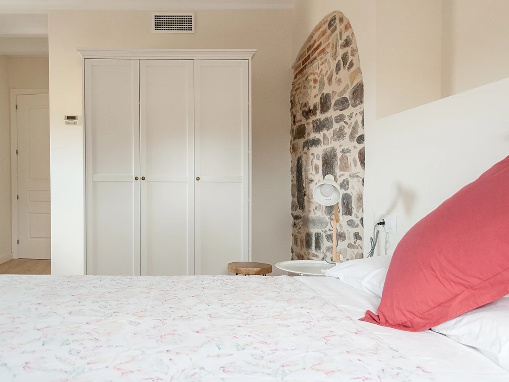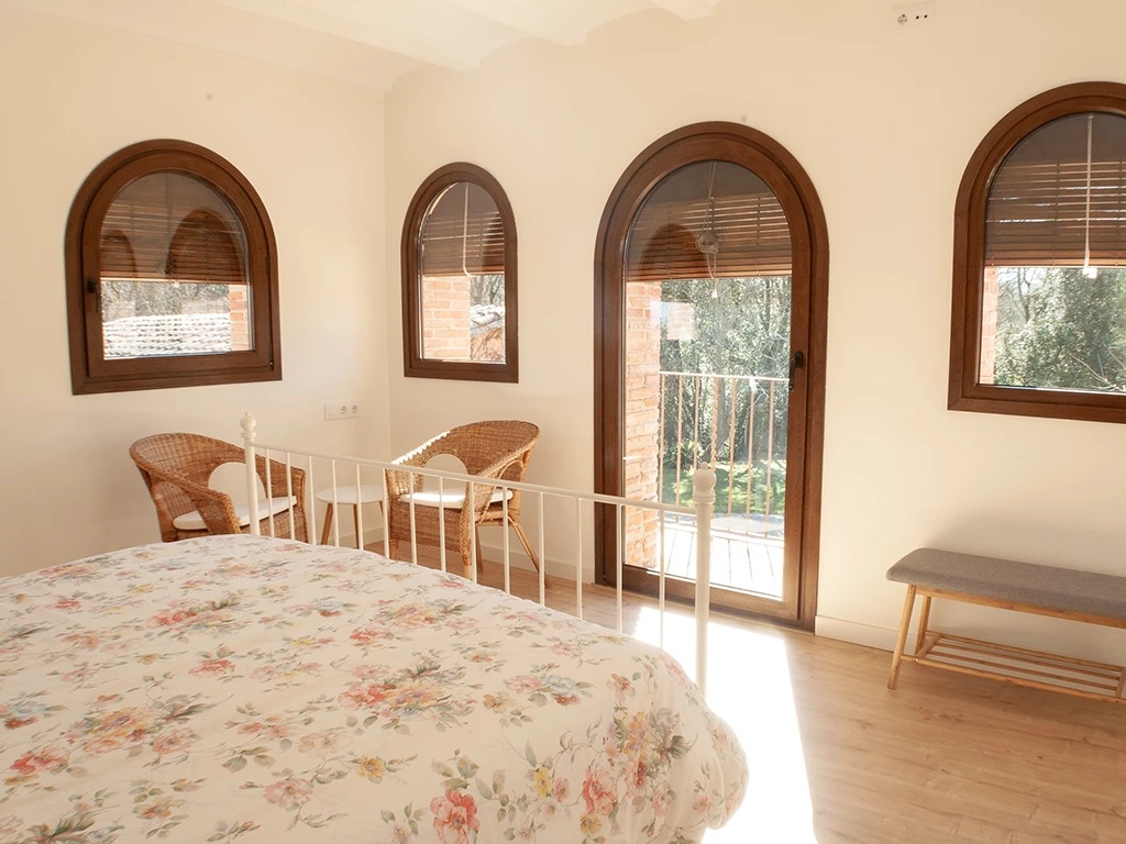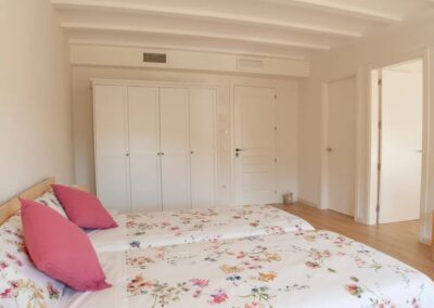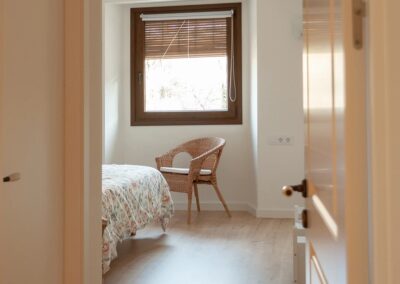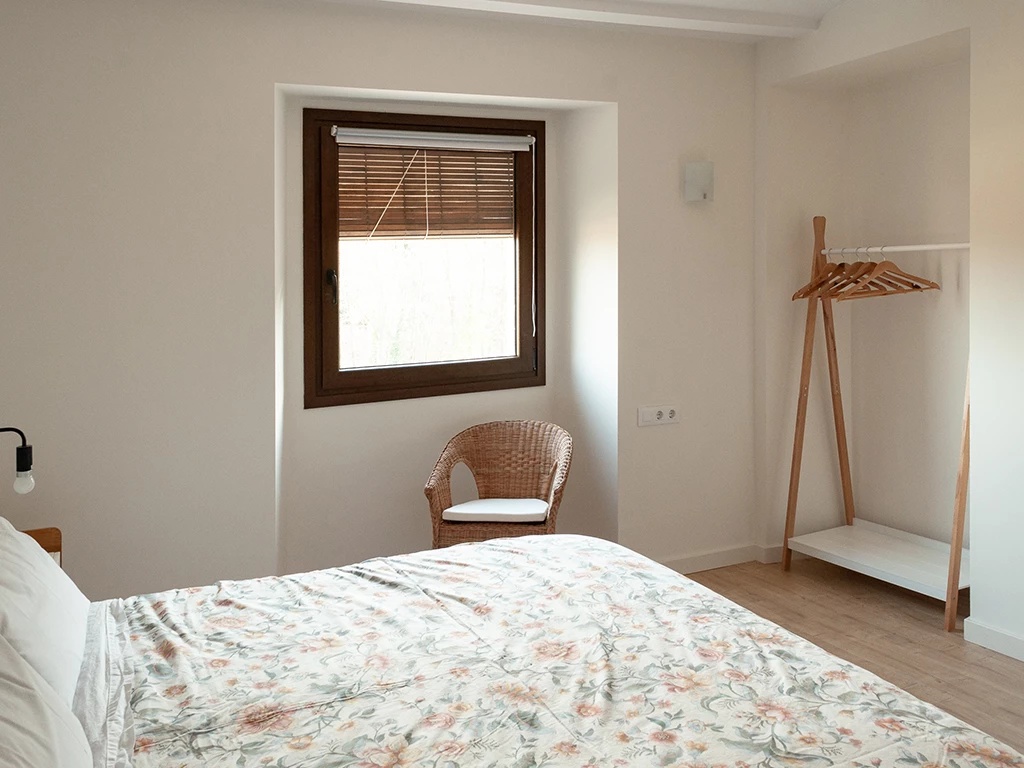 Ca n’Oller dispone de 9 habitaciones en total, todas ellas completamente reformadas, con baño privado y decoradas con una cuidada combinación de estilo rústico catalán y detalles contemporáneos. La distribución permite alojar cómodamente a 20 huéspedes, ofreciendo diferentes tipologías pensadas para adaptarse a todo tipo de grupos.
