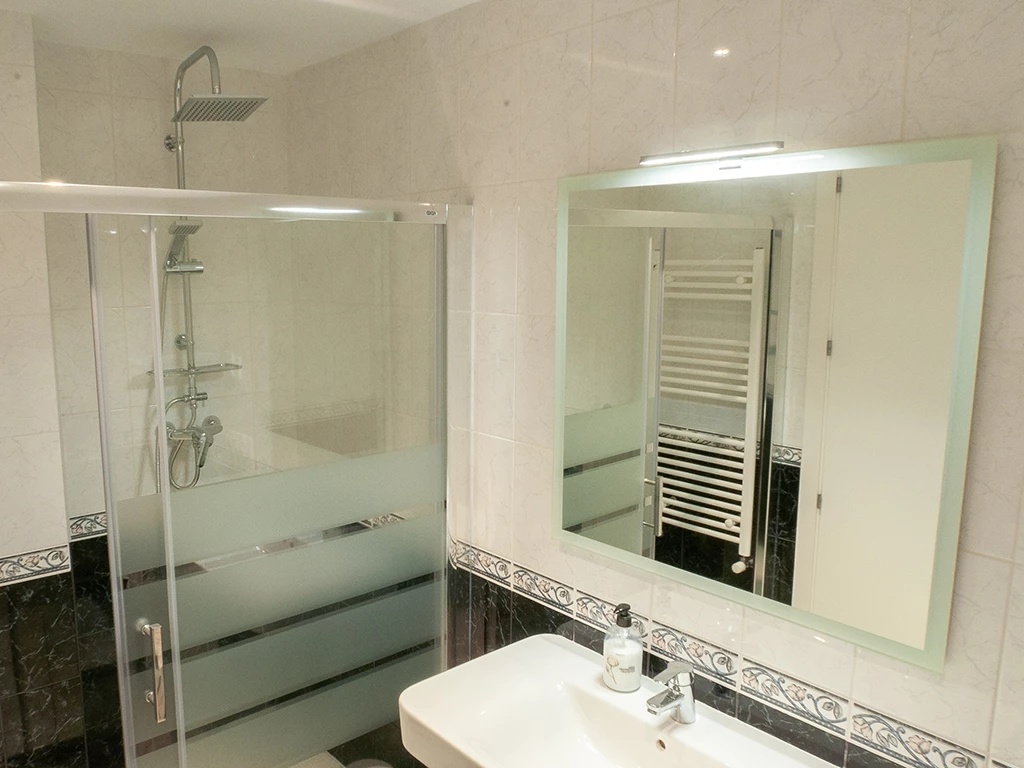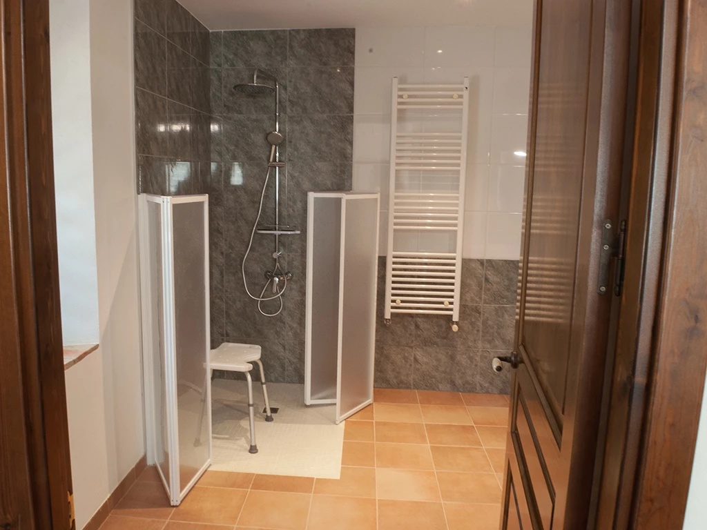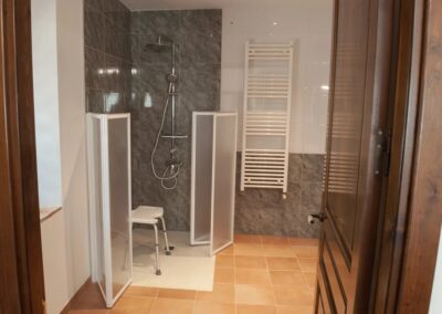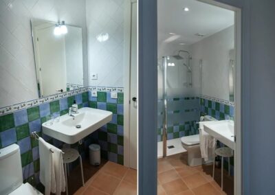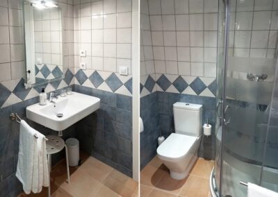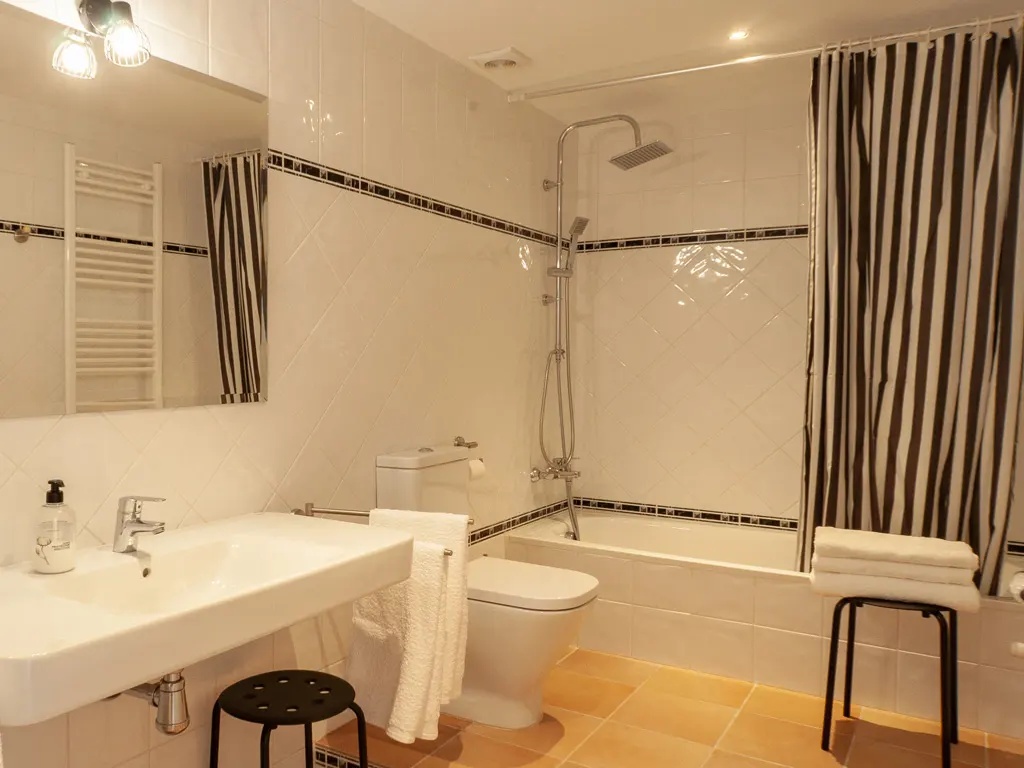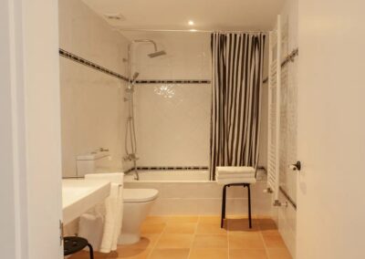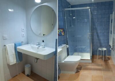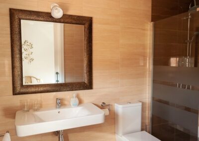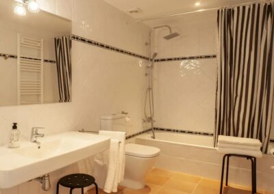 Todas las habitaciones disponen de baño completo privado, con plato de ducha o bañera, duchas de lluvia combinadas con ducha de mano en varias estancias y toalleros calefactados. Muchas ofrecen vistas al jardín, la piscina, la era o los campos del entorno, aportando luminosidad, calma y una conexión directa con la naturaleza.