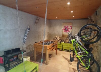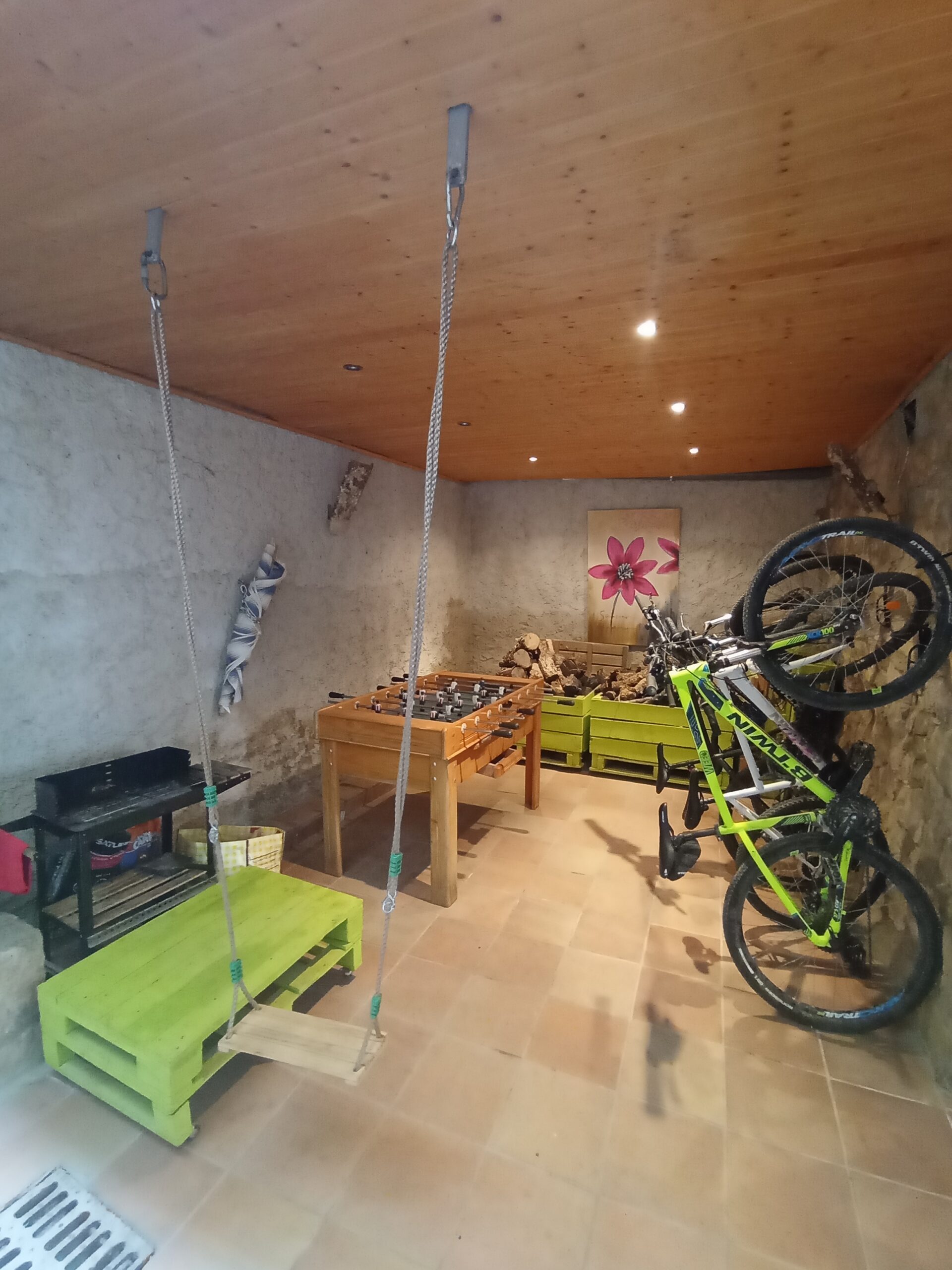 La casa rural cuenta con parque infantil (futbolin y columpio) y barbacoa.