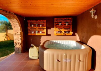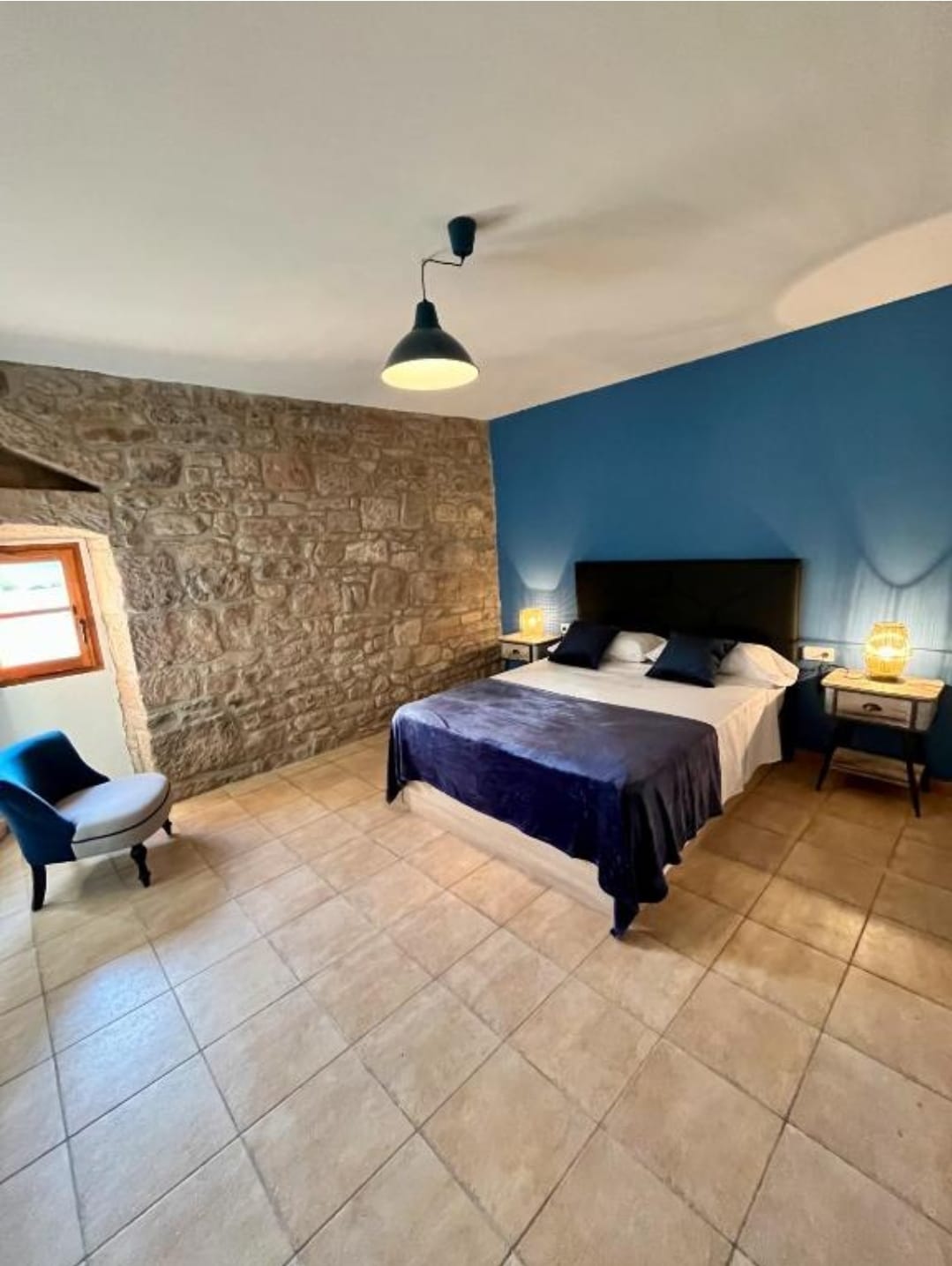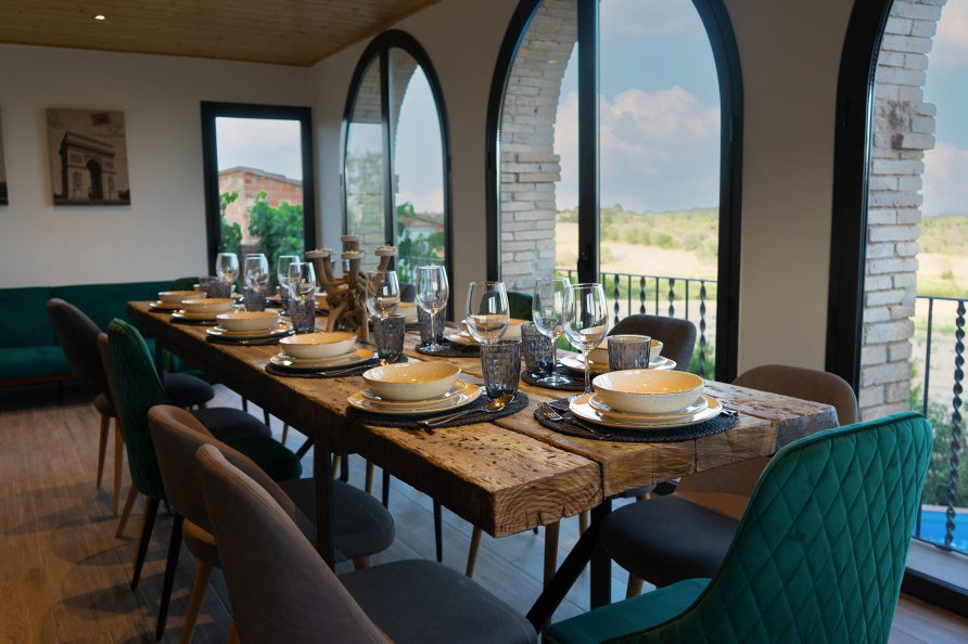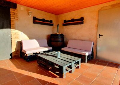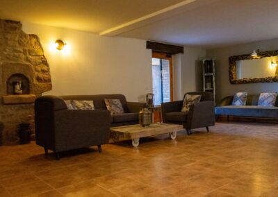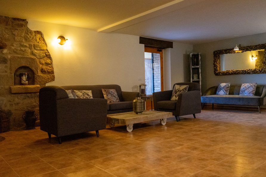 Al ingresar a nuestra casa, te recibirá un amplio vestíbulo con cómodos sofás, perfecto para relajarte y deshacer las maletas. Esta hermosa masía cuenta con un total de cinco habitaciones: cuatro dobles y una cuádruple, ofreciendo un ambiente acogedor.