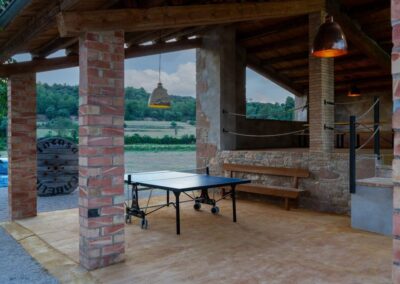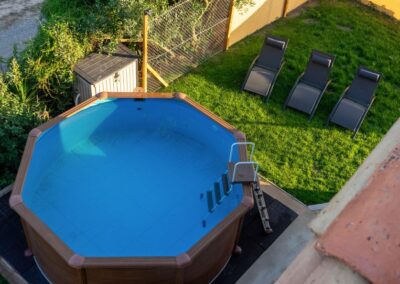 La finca dispone de una piscina privada ideal para refrescarse en los días calurosos, además de una zona de barbacoa donde los huéspedes pueden disfrutar de comidas al aire libre en un entorno tranquilo. El amplio porche es un lugar perfecto para relajarse, y también incluye una mesa de ping-pong