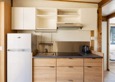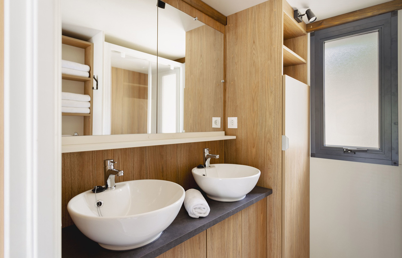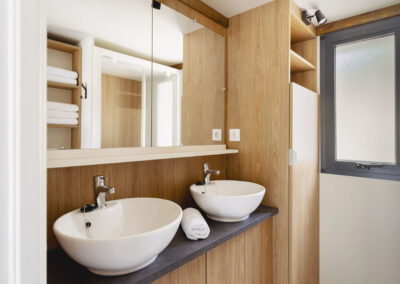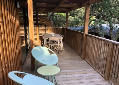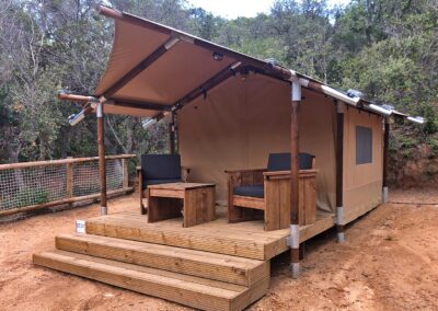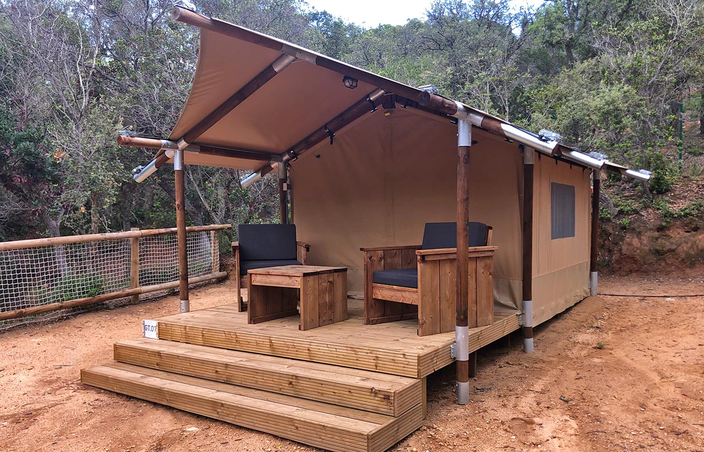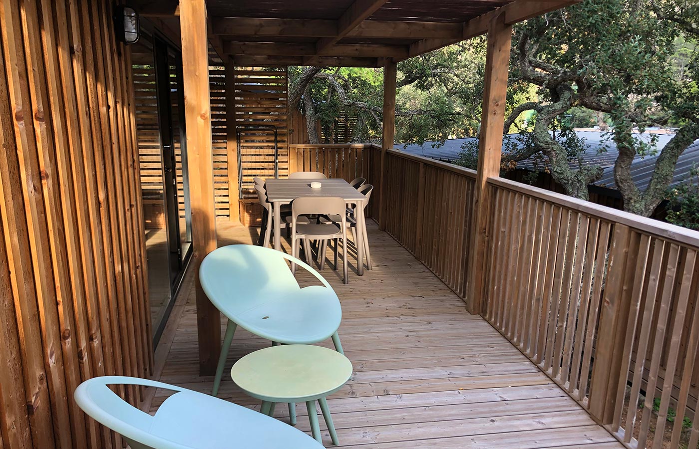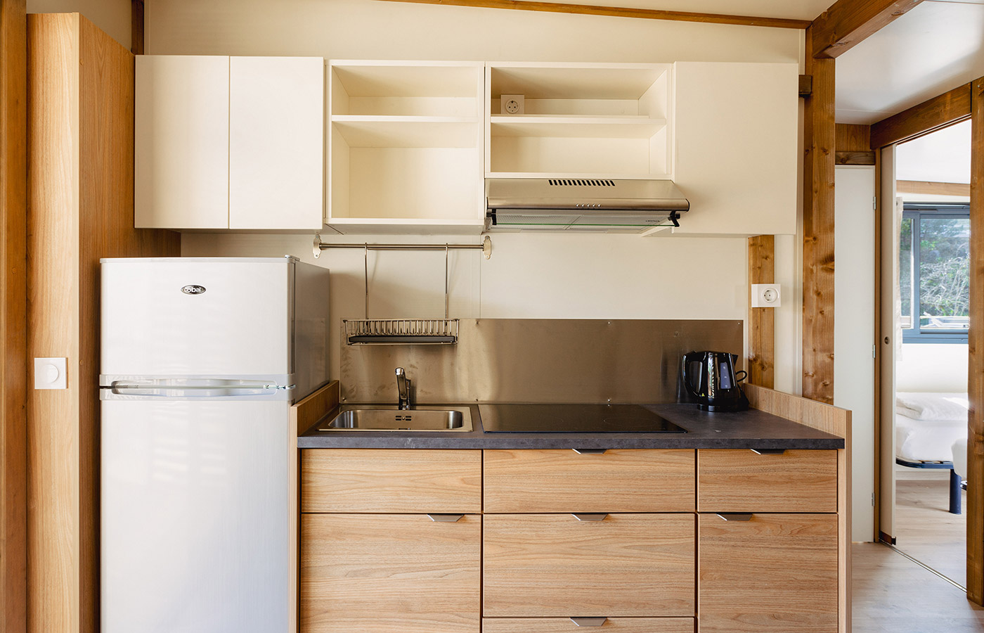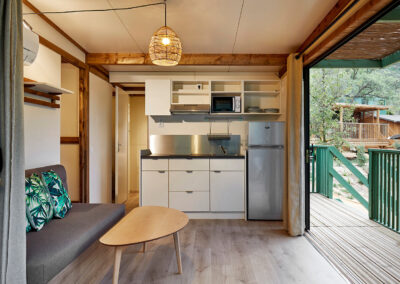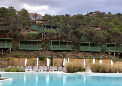 El camping cuenta con una variada oferta de bungalows diseñados para satisfacer las necesidades de sus huéspedes. Entre ellos, destaca el Bungalow Xaloc, ideal para familias y mascotas, con capacidad para 5 personas y una distribución práctica en 2 habitaciones dentro de 25 m². También están disponibles los bungalows Tramuntana, Garbí y Mestral, con opciones para alojar hasta 6 personas, cada uno ofreciendo diferentes configuraciones, todas pensadas para garantizar una estancia cómoda.