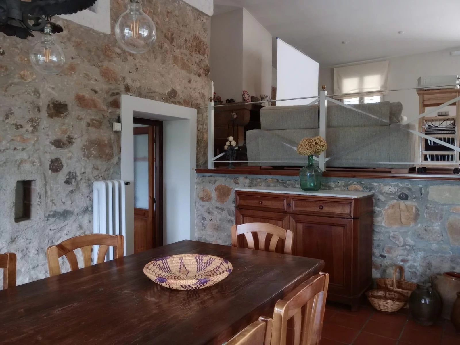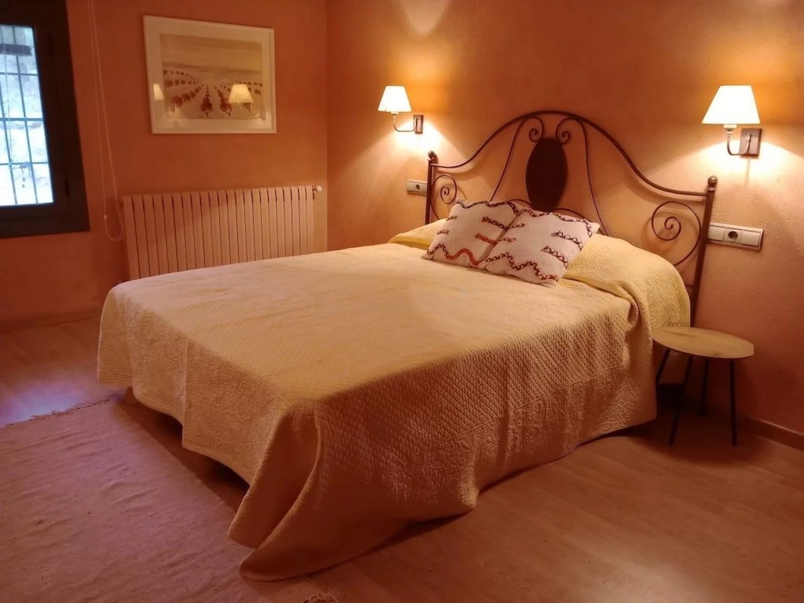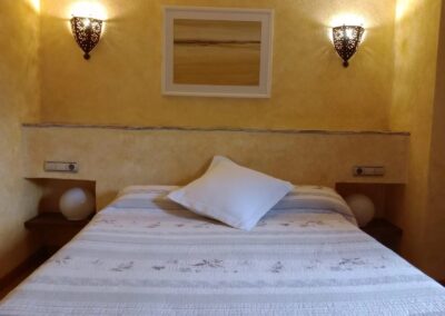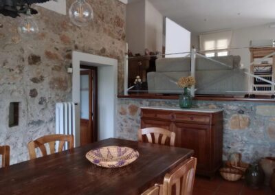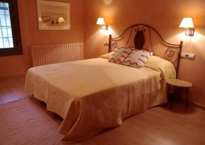 Can Collet, con una superficie de 400 metros cuadrados, tiene capacidad para alojar hasta 20 personas cómodamente. Distribuida en dos plantas, cuenta con 8 habitaciones dobles, 5 baños (3 de ellos en suite), un acogedor salón comedor y un espacio de reunión con chimenea y equipo de música, perfecto para compartir momentos inolvidables con amigos y familiares.