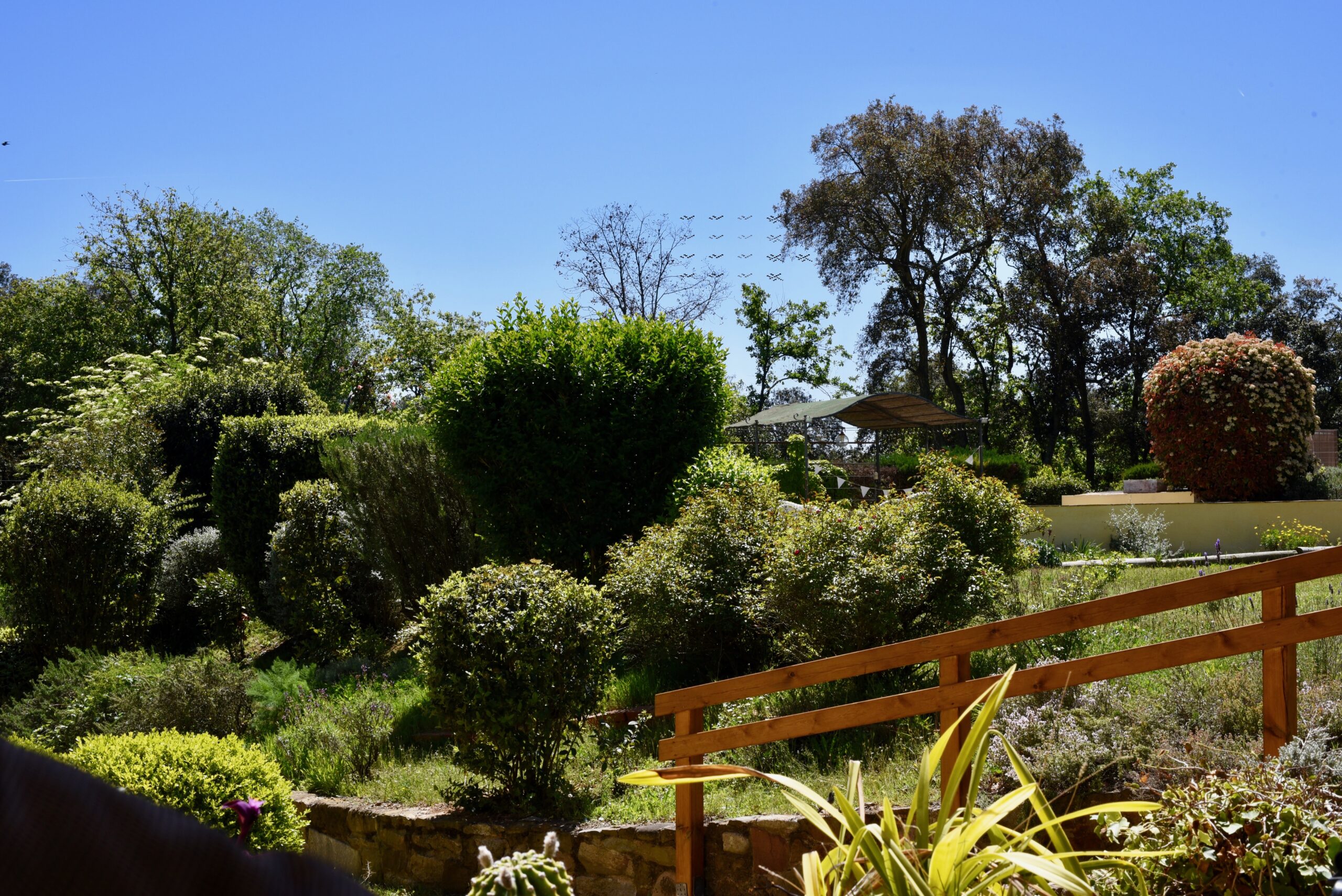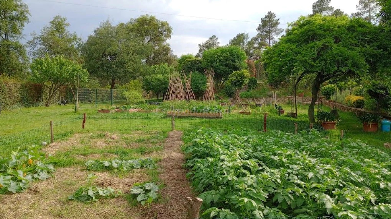 Disponemos de una parcela de 1 hectarea vallada en la que incluye jardín, huerto y un bosque.