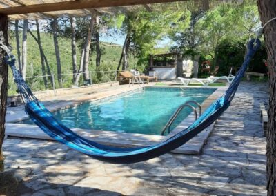 En el exterior Can Favó cuenta con un amplio patio donde destaca su fantástica piscina