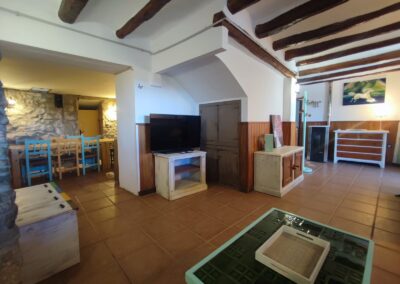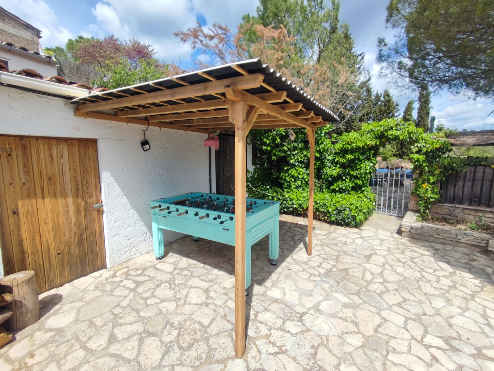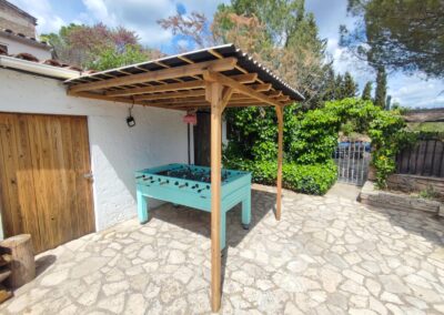Además hay un pequeño chiringuito con una nevera para las bebidas y un equipo de música para el disfrute de toda la familia También cuenta con un futbolín una pista de baloncesto y fútbol sala y un solárium