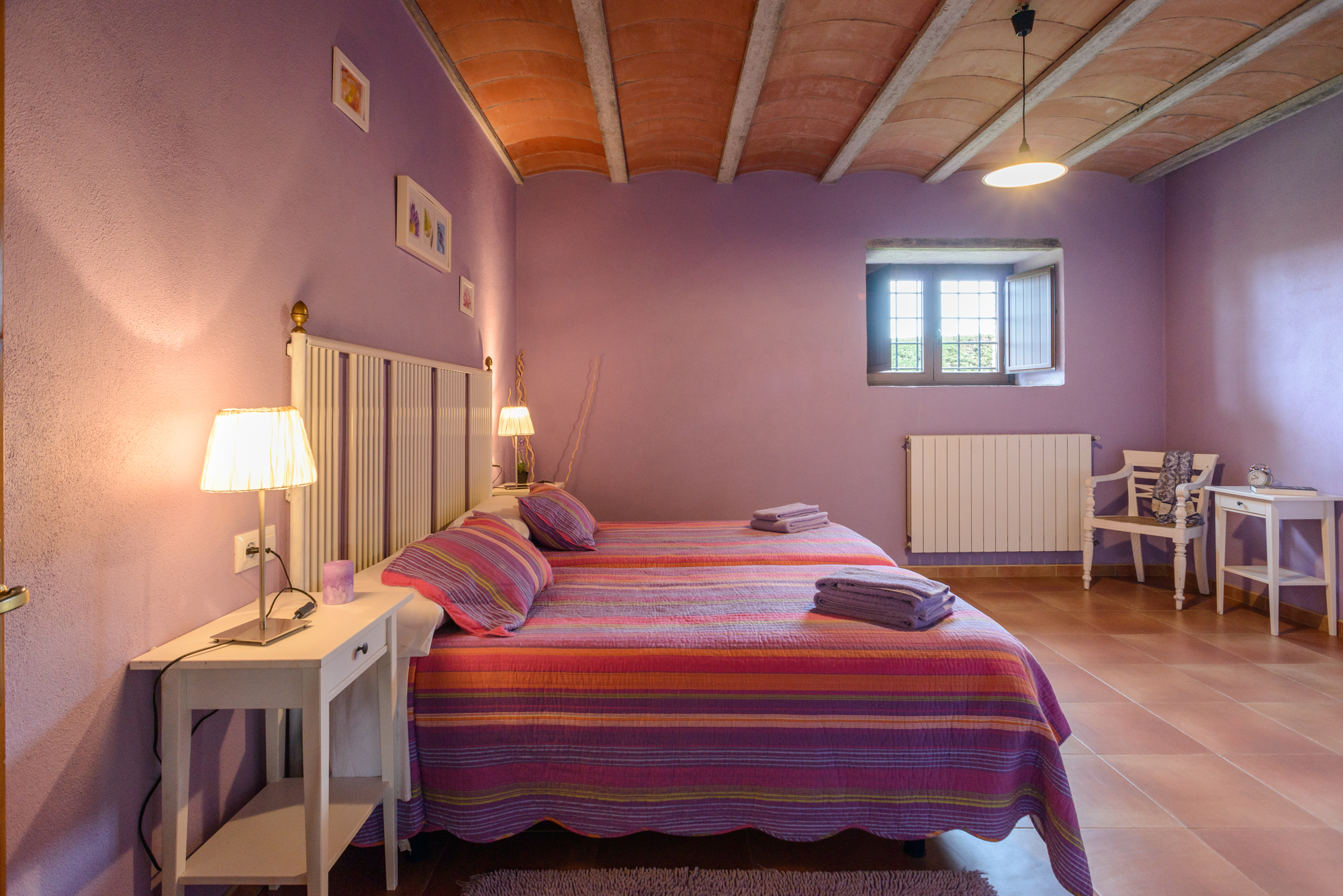 Con una entrada principal que distribuye las 5 habitaciones en una sola planta, Can Guinau es ideal para grupos de 12 a 15 personas. Todas las habitaciones están equipadas con ropa de cama y toallas para tu comodidad.