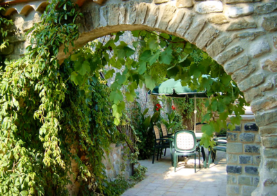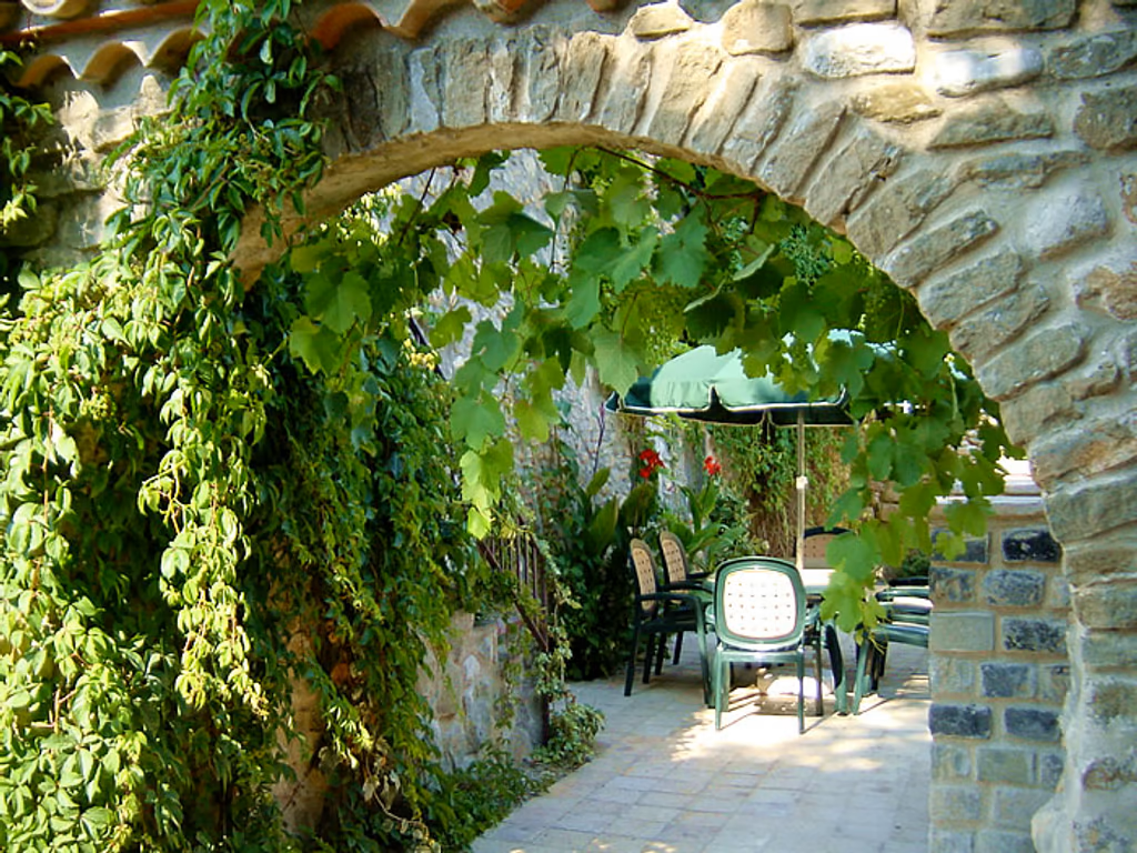 La casa tiene una  amplia terraza, perfecta para disfrutar de las noches frescas del verano y para parar el sol. La terraza está equipada con una gran mesa y sillas, para disfrutar de las comidas más frescas del verano, así como también de una barbacoa y una parra, desde donde los clientes pueden coger uvas si así lo desean.