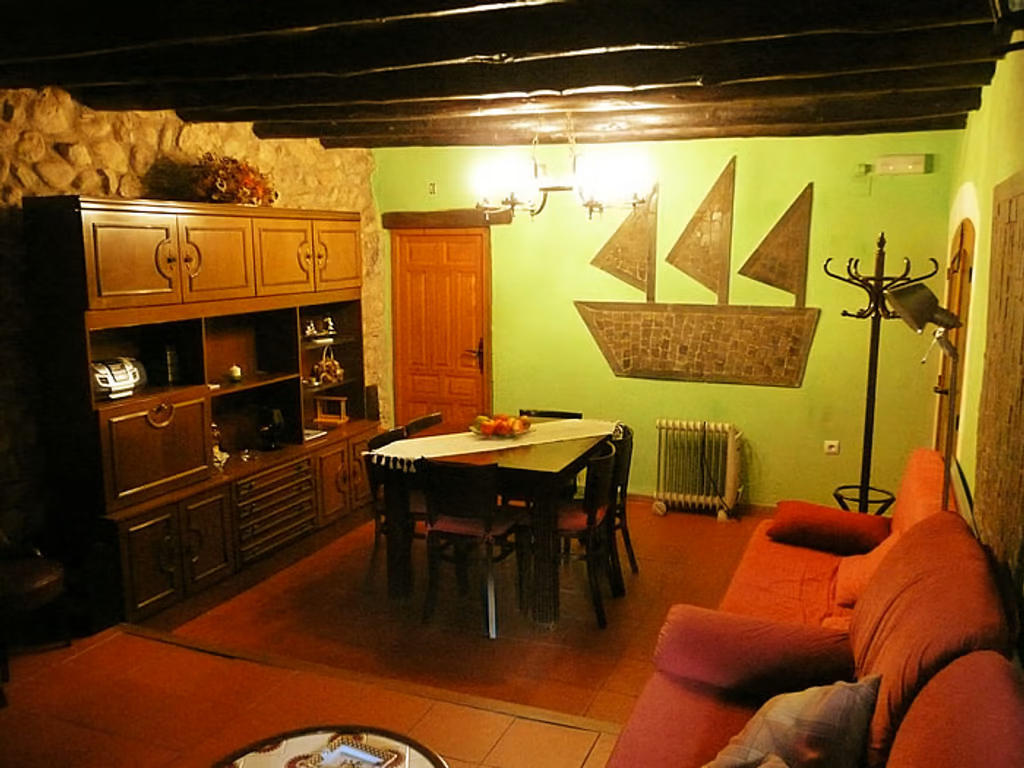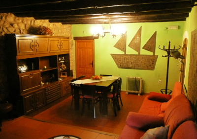 Cuenta con  un amplio comedor-sala de estar, completamente equipado para satisfacer las necesidades de recreo y ocio de nuestros huéspedes: televisión, chimenea, mesa para las comidas, luz natural desde el exterior, sofá, etc., con una iluminación muy propia del estilo rústico de toda la casa, y de tonos cálidos y rojizos que favorecen el bienestar y el confort de los clientes.