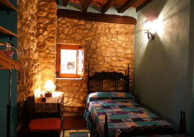 Las habitaciones están  marcadas por un estilo rústico y tradicional, se dividen en cuatro: tres de dobles y una de individual. Entre las habitaciones dobles hay una tipo suite, la cual dispone de baño, chimenea y balcón. Todas las habitaciones disponen de ventana, desde las cuales se ve el pueblo y el vecindario de Crespià. El mobiliario de la habitación liga perfectamente con el carácter de las estancias: de estilo rural y austero, donde lo que predomina es la fuerte personalidad de las paredes, de piedra, y el techo, recubierto de vigas de madera.