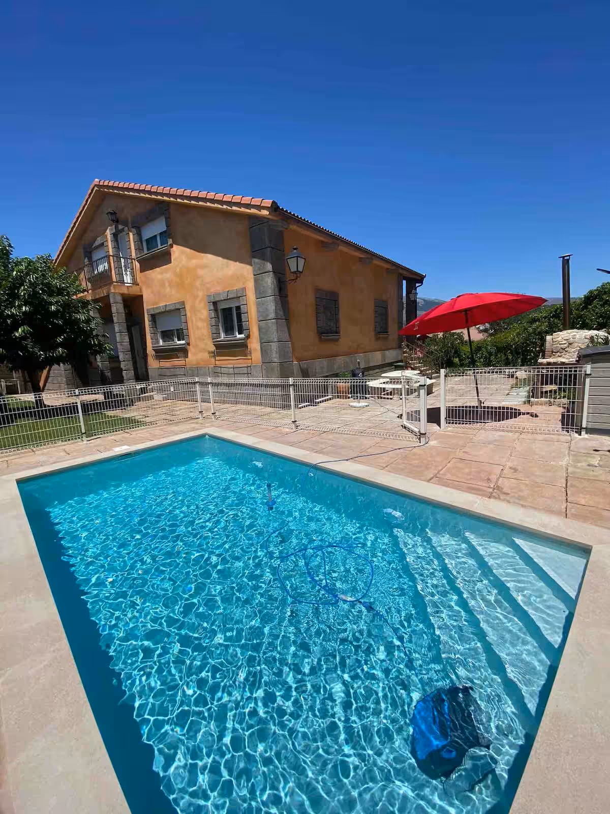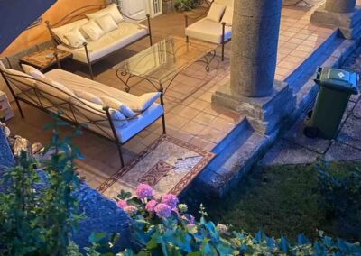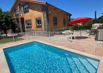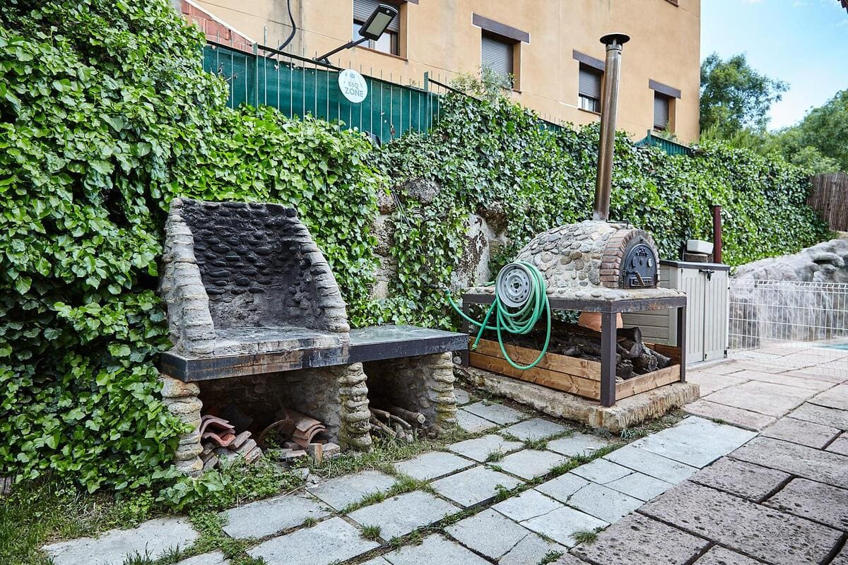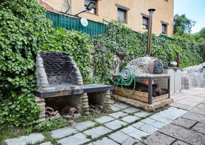 Los exteriores de Casa Aurora invitan al descanso y la diversión. Su amplio jardín cerrado proporciona un espacio seguro para niños y mascotas. La piscina vallada, ideal para los días de verano, permite refrescarse con total tranquilidad. Además, la casa dispone de dos barbacoas y un horno de leña, perfectos para disfrutar de comidas al aire libre. Por la noche, la iluminación en la fuente del jardín crea un ambiente mágico para relajarse bajo las estrellas.