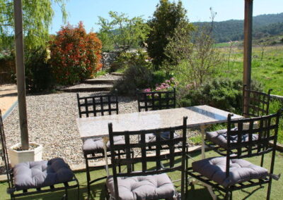 - Disponemos de una plaza para tomar el fresco o hacer actividades bastante grande, con árboles, terraza, barbacoa de obra y unas mesas que están a vuestra disposición. Este espacio es compartido con los otros huéspedes. Para contener la molestia del humo a los vecinos se limita el uso de la barbacoa a una vez cada dos días.