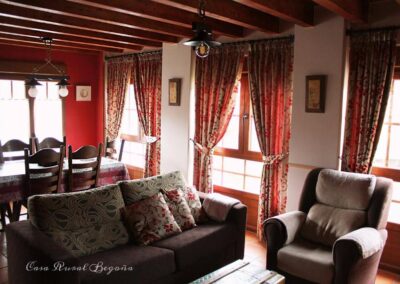 Casa Rural Begoña tiene una planta baja y primera plnata. Con capacidad para 6 personas, está construida en piedra y madera.