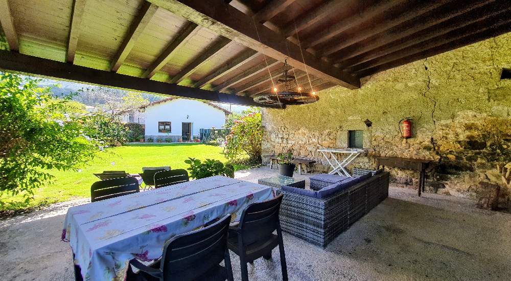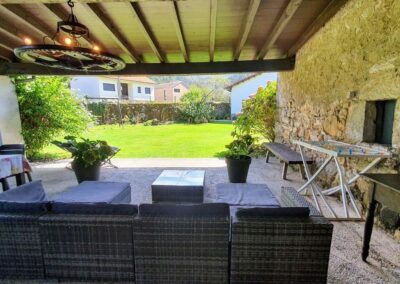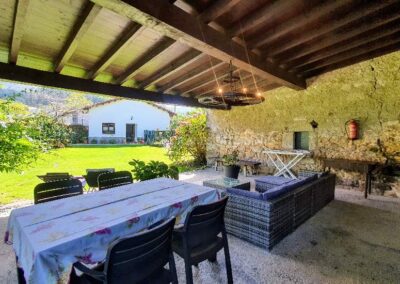 En el exterior, Casa Carmen dispone de un porche cubierto con barbacoa y mobiliario que ofrece vistas al jardín vallado, donde los huéspedes pueden disfrutar del buen tiempo en las tumbonas disponibles.