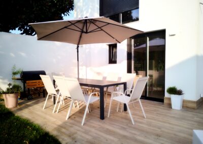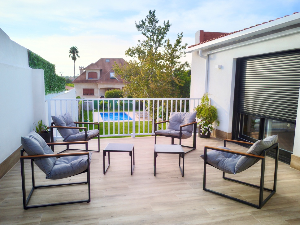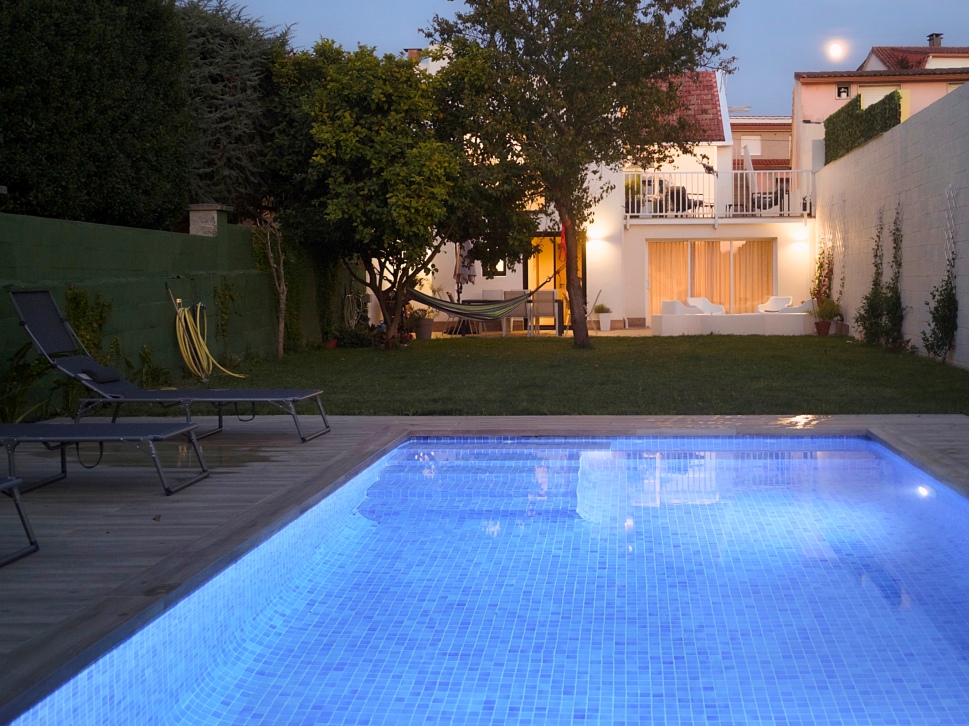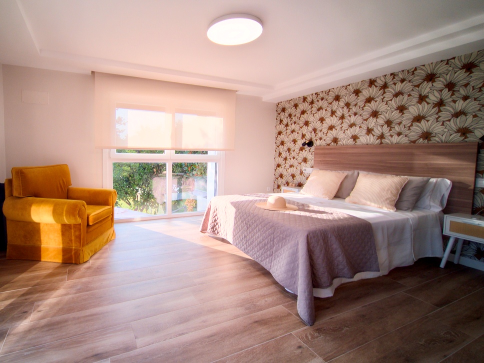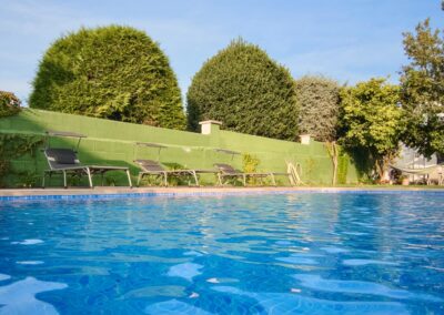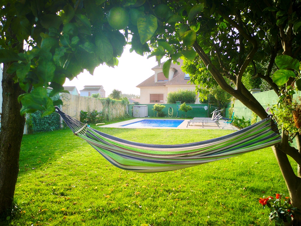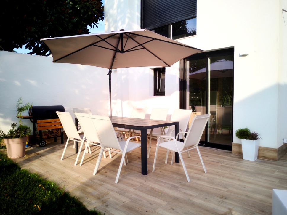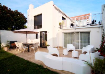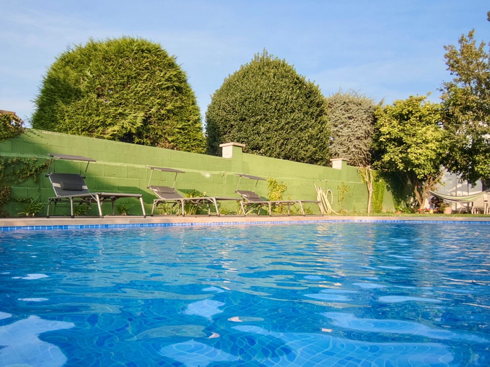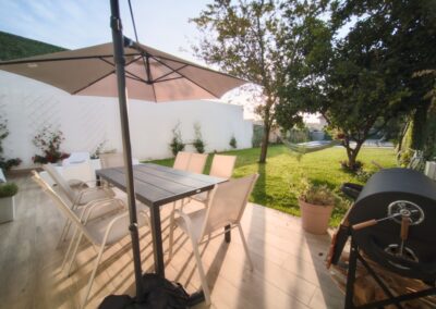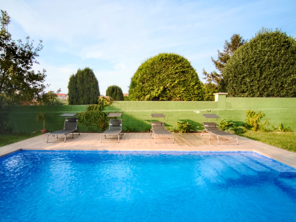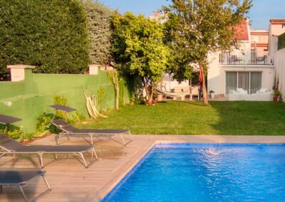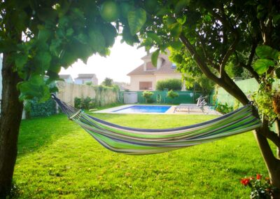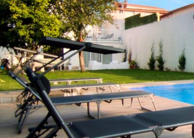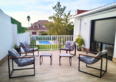 Los exteriores completan esta experiencia con una piscina privada rodeada de tumbonas y césped, perfecta para refrescarse en los días soleados, así como un jardín con terrazas, barbacoa y cenador que invita a comidas al aire libre y a momentos de relax en un entorno íntimo y cuidado.