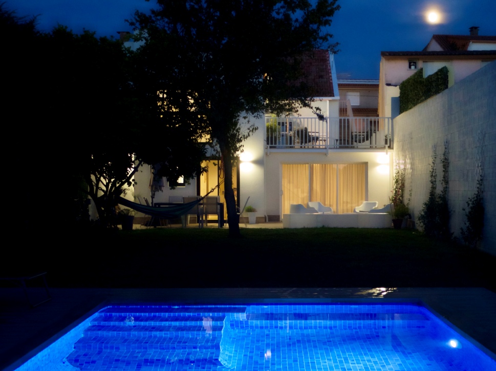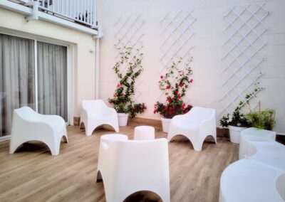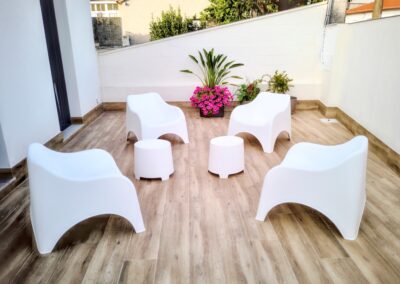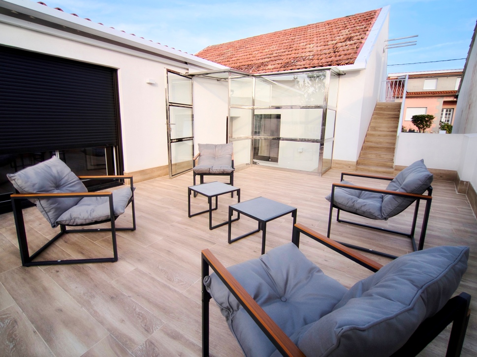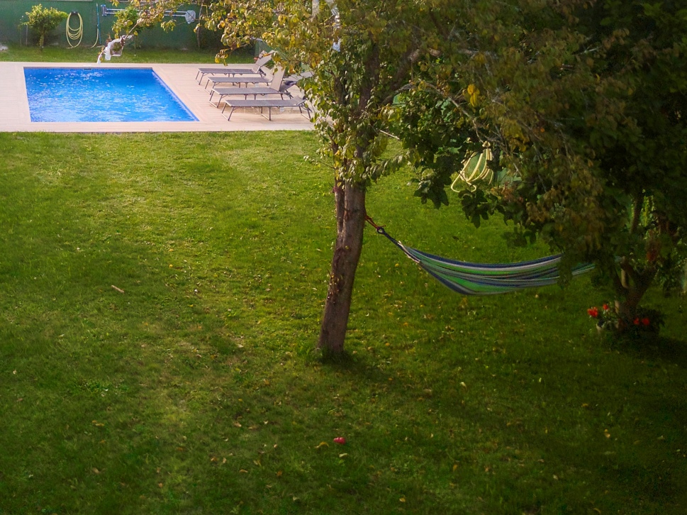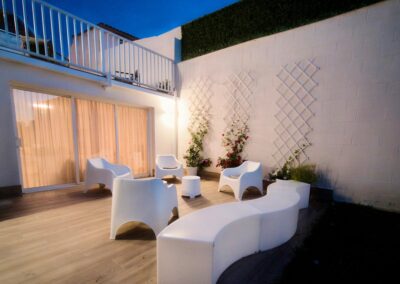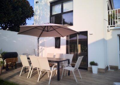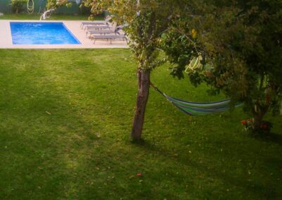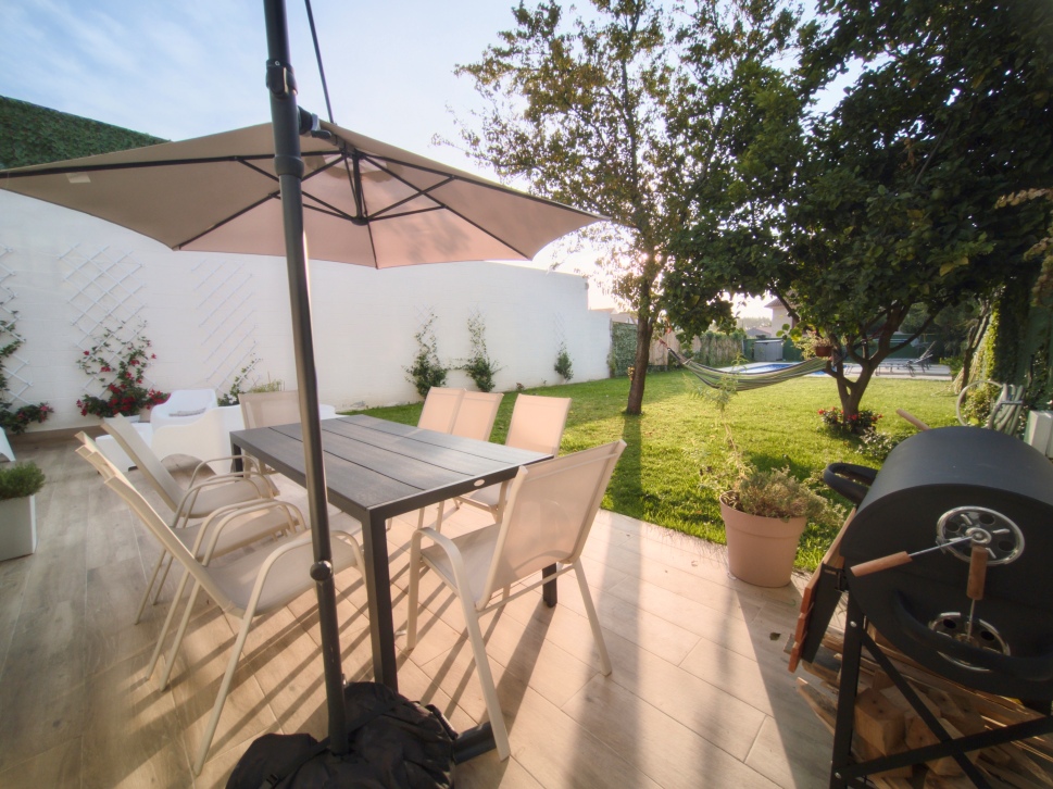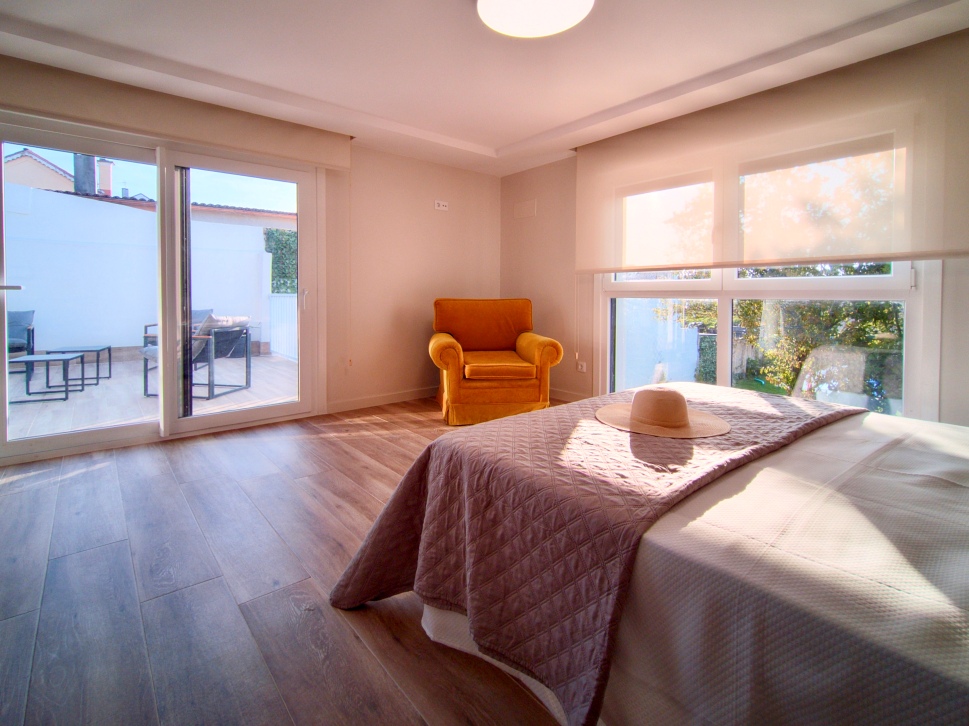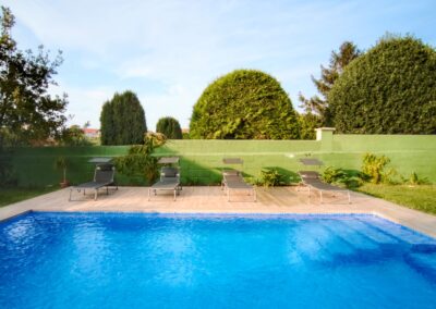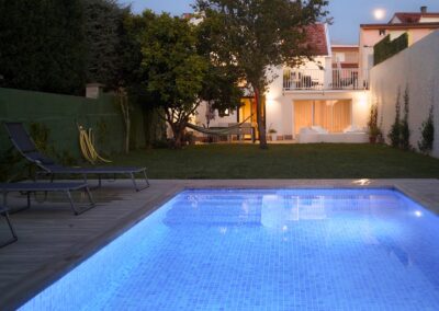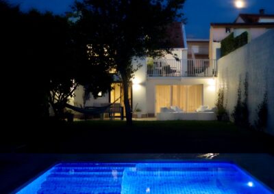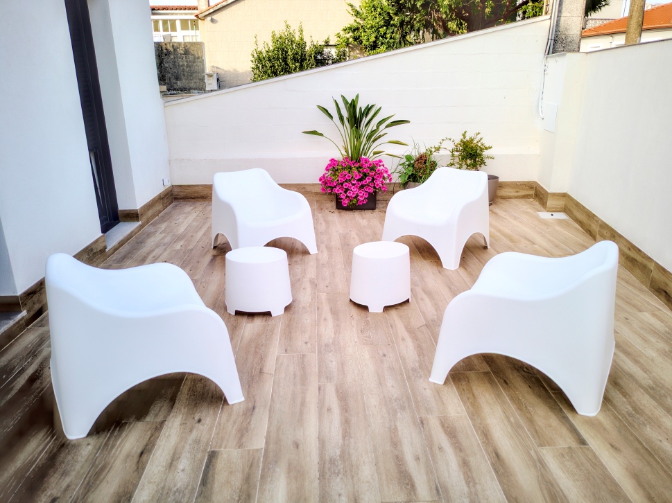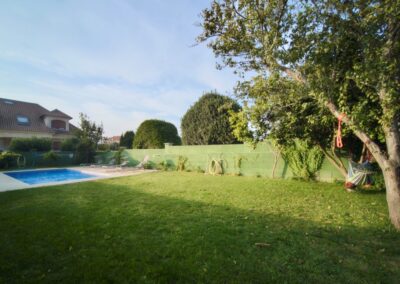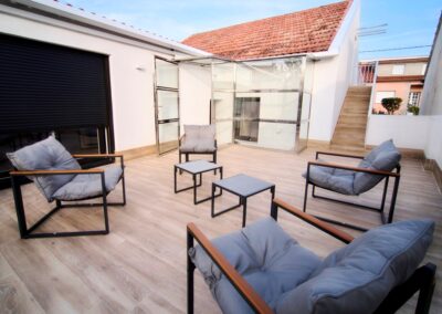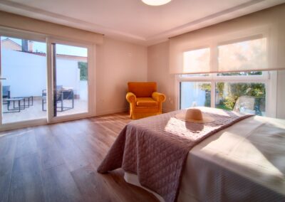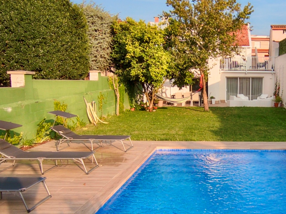 Los exteriores completan esta experiencia con una piscina privada rodeada de tumbonas y césped, perfecta para refrescarse en los días soleados, así como un jardín con terrazas, barbacoa y cenador que invita a comidas al aire libre y a momentos de relax en un entorno íntimo y cuidado.