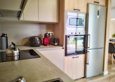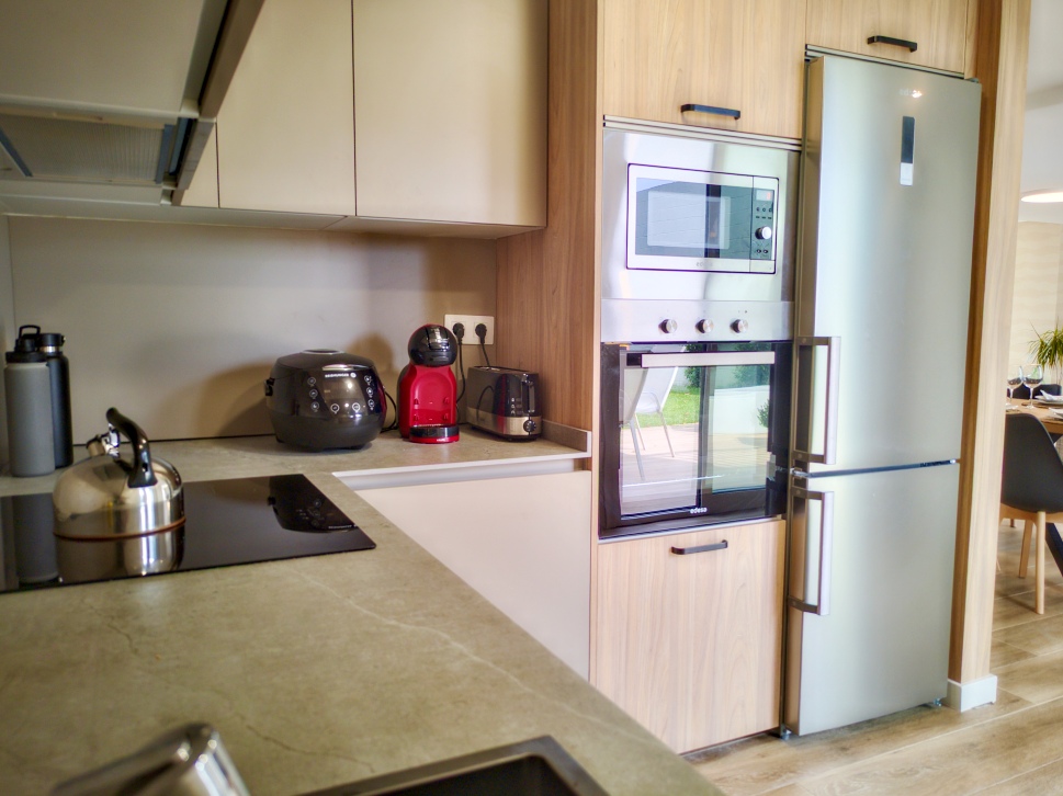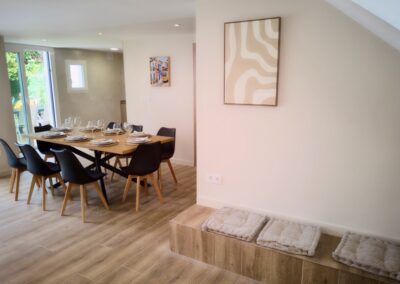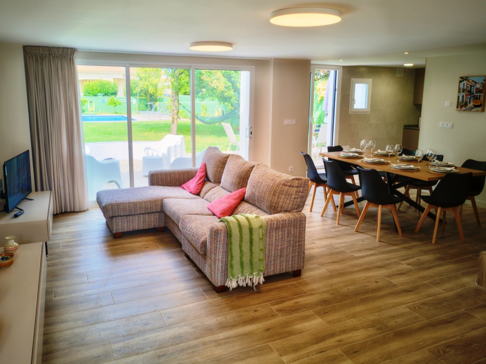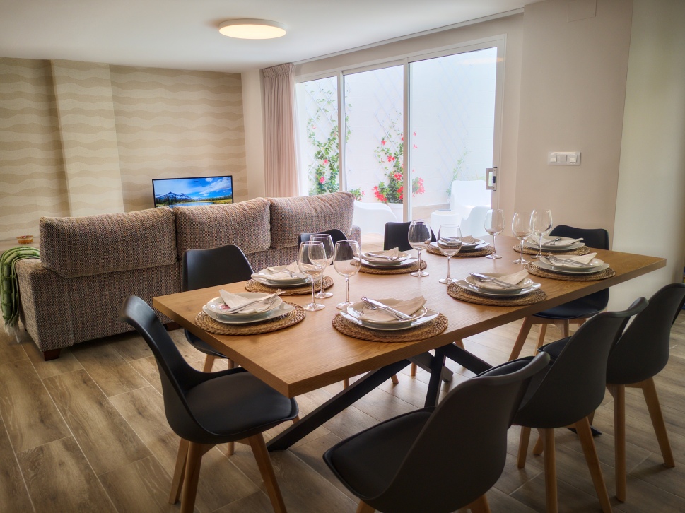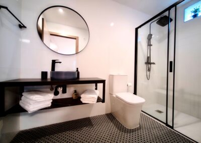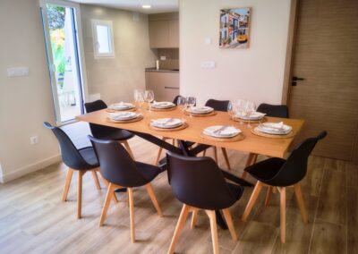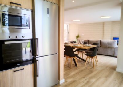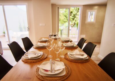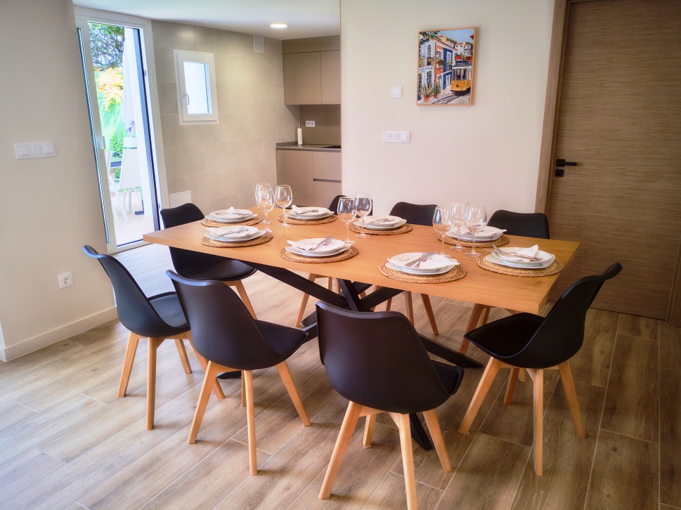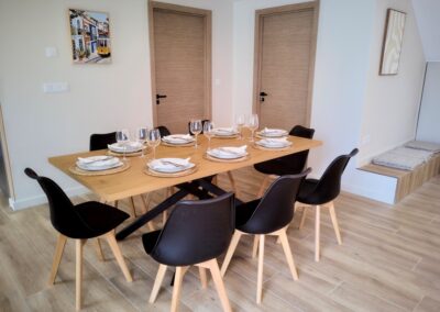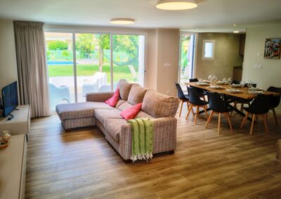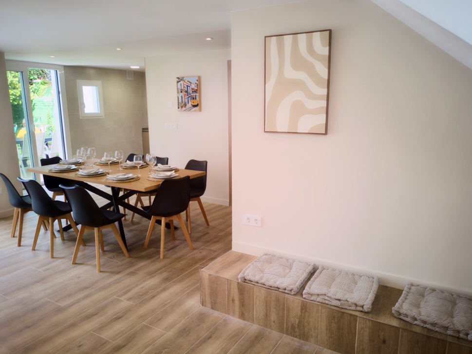 La distribución está diseñada para el confort y la convivencia: 4 dormitorios acogedores, decorados con estilo y detalles modernos que garantizan el descanso; un luminoso salón con zona de comedor, ideal para compartir momentos en grupo; una cocina totalmente equipada con electrodomésticos, menaje y todo lo necesario para preparar desde desayunos ligeros hasta cenas con productos locales; y 4 baños modernos y funcionales, con amplias duchas y todas las comodidades para tu estancia.