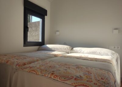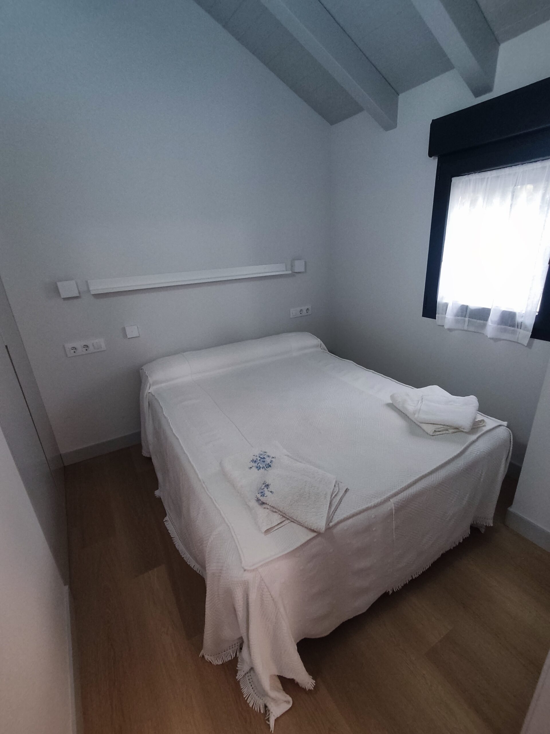 La casa tiene 2 habitaciones, una con cama doble y otra con cama nido, es decir, 2 camas individuales. Tiene un baño equipado con ducha, y una amplia zona de cocina comedor y salón. En este salón hay un sofá cama de 130cm, para 2 personas más.