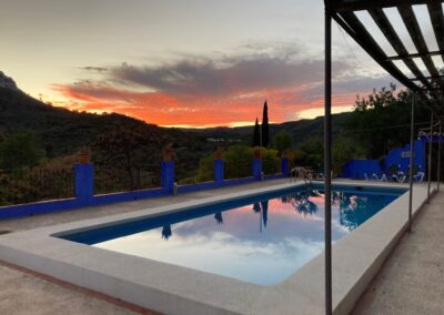 Nuestra amplia piscina ofrece el lugar perfecto para disfrutar del sol y refrescarte entre las 7 de la mañana y las 9 de la noche. Con vistas a las montañas y el canto de los pájaros como banda sonora, te garantizamos momentos de puro relax.