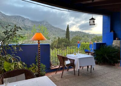 Relájate en nuestras terrazas y patios rodeados de exuberantes flores y vistas panorámicas del valle y las majestuosas montañas de La Foradá. Cada hora del día ofrece una nueva perspectiva de este impresionante entorno natural.
