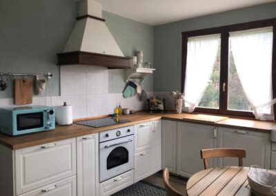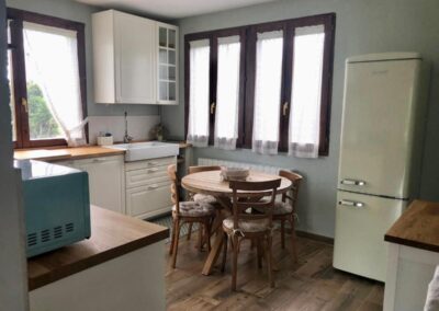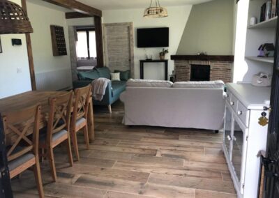 El espacio principal de la casa es un amplio salón-comedor que invita a relajarse junto a la chimenea, creando un ambiente cálido y acogedor. La cocina, totalmente equipada con electrodomésticos modernos como lavavajillas, horno y microondas, te permitirá preparar deliciosas comidas para compartir. Además, la casa dispone de calefacción, Wi-Fi gratuito y Smart TV, asegurando una estancia confortable en cualquier época del año.