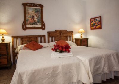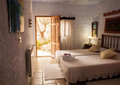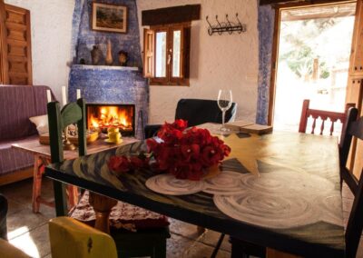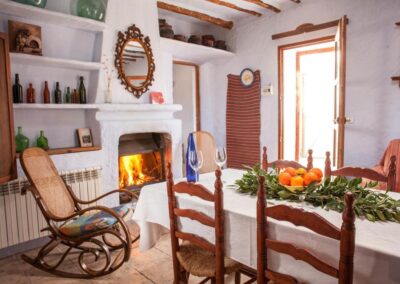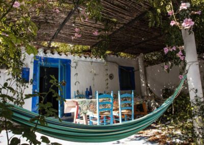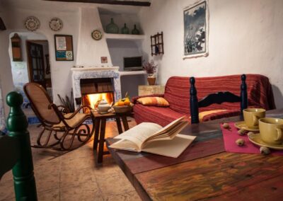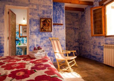 Casa Abuela es una de las más amplias del complejo, perfecta para quienes buscan disfrutar de un espacio generoso y acogedor. La casa es para 5 personas, con 3 habitaciones: dos de ellas cuentan con 2 camas de 90cm, y la tercera tiene una cama de 1,50cm. Además, dispone de 2 cuartos de baño. Su cocina y el amplio porche techado la convierten en un lugar ideal para disfrutar de comidas al aire libre o relajarse en una hamaca bajo la sombra de un olivo. La casa también cuenta con chimenea, sala de estar y un bonito jardín, creando el escenario perfecto para descansar y reconectar con la naturaleza.