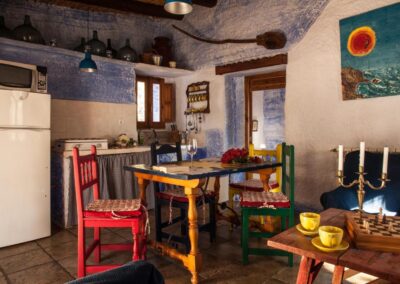 Casa Pájaros es especial por su diseño único y su ubicación elevada, lo que le otorga unas vistas espectaculares del entorno. La casa está pensada para dos personas y cuenta con una habitación con dos camas de 90 cm y un cuarto de baño. Se accede a esta casa a través de una encantadora escalera, típica de la zona, y su terraza con cerramiento de cristal permite disfrutar de la luz natural y de los bellos atardeceres almerienses. Con una chimenea y una atmósfera acogedora, es el refugio perfecto para parejas que buscan tranquilidad o un momento de relax.