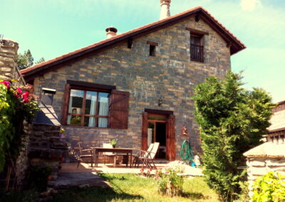 Casa Rural Artena construida en piedra y adornada con puertas y ventanas de madera, tiene capacidad para alojar hasta un máximo de 7 personas, ofreciendo un ambiente cálido y acogedor.