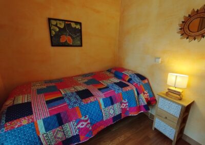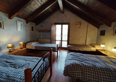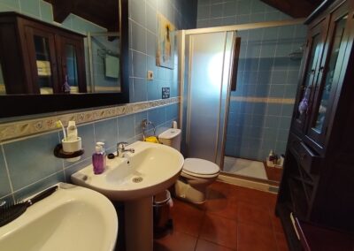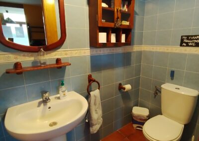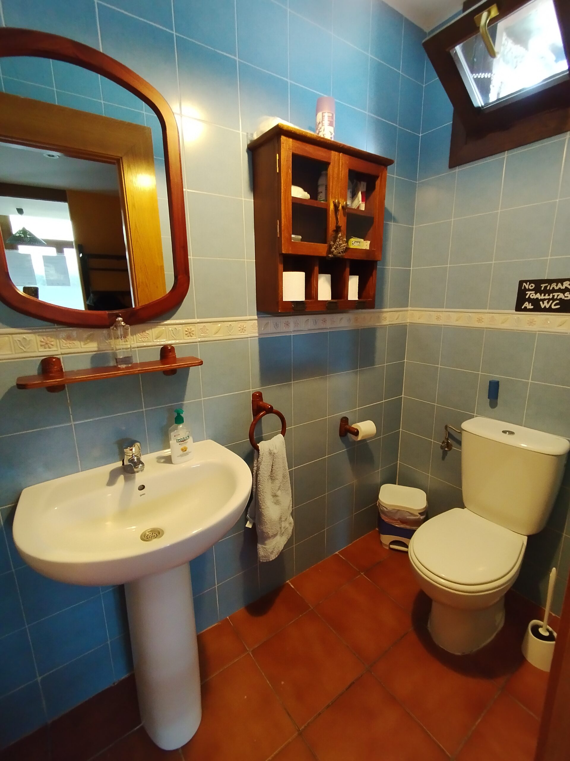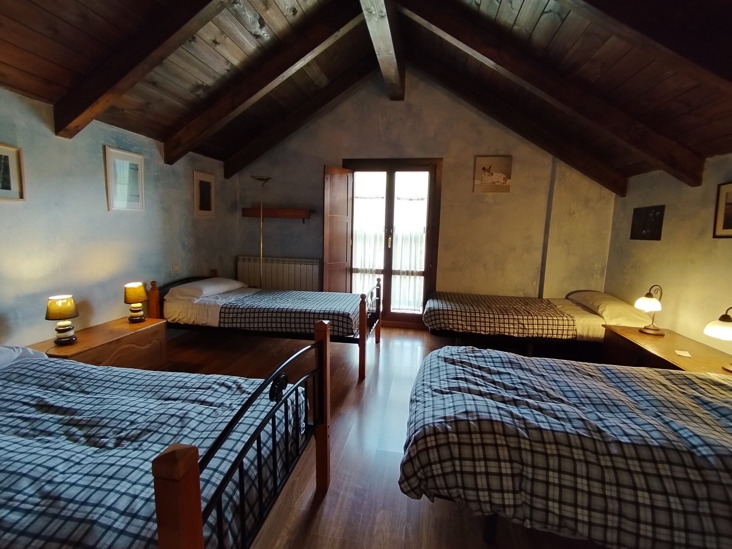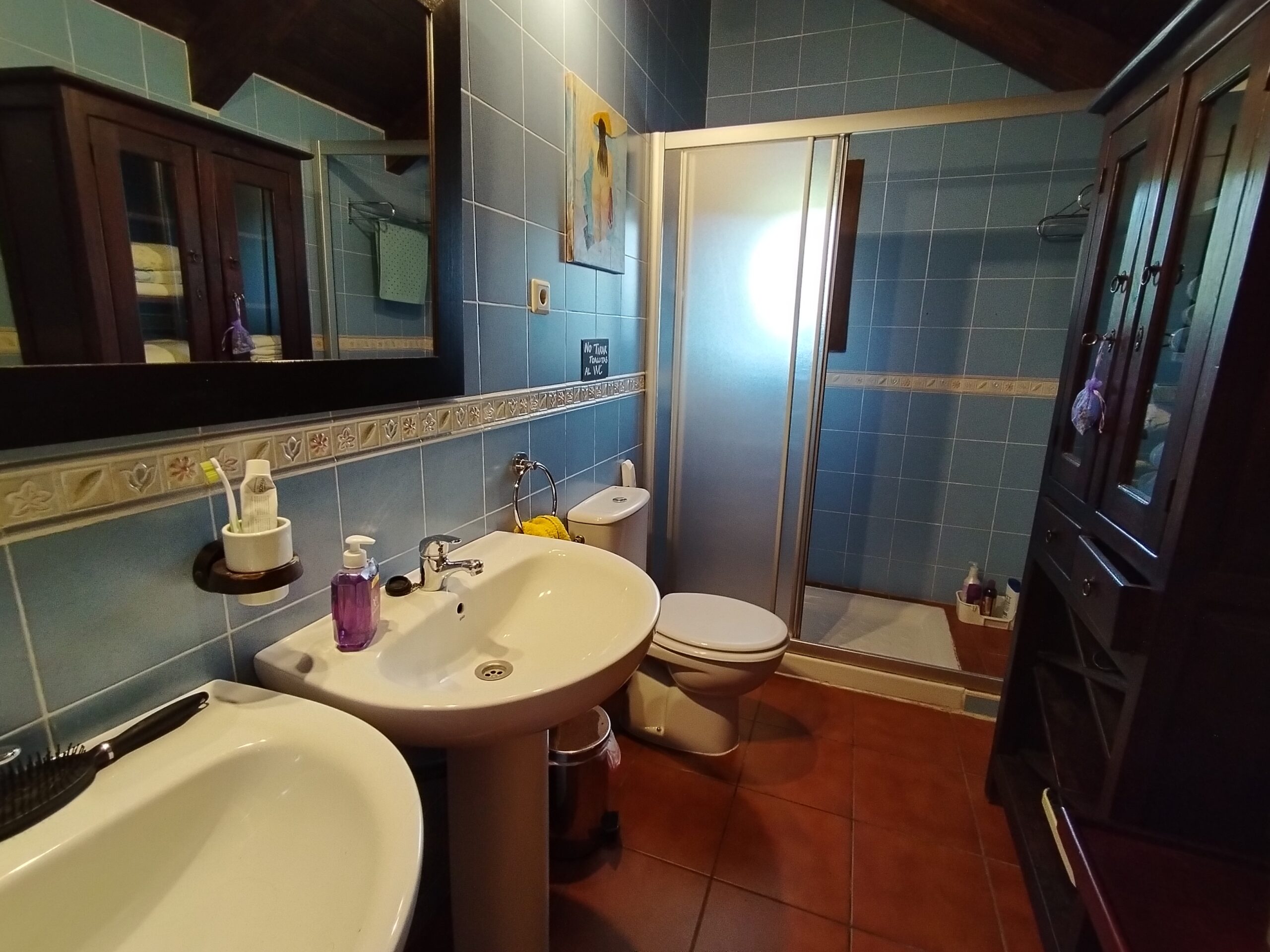 En la planta superior, las habitaciones están distribuidas de manera cómoda: una habitación con cama de matrimonio, otra con una cama individual y una encantadora buhardilla con cuatro camas individuales. La casa también cuenta con dos baños, uno completo con plato de ducha y otro que funciona como aseo, ambos equipados con los elementos necesarios para una estancia funcional y confortable.
