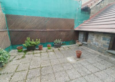 La casa cuenta con un jardín vallado con manguera para refrescar al perro y un patio interior o corralito junto al salón donde también pueden estar seguros los perros.