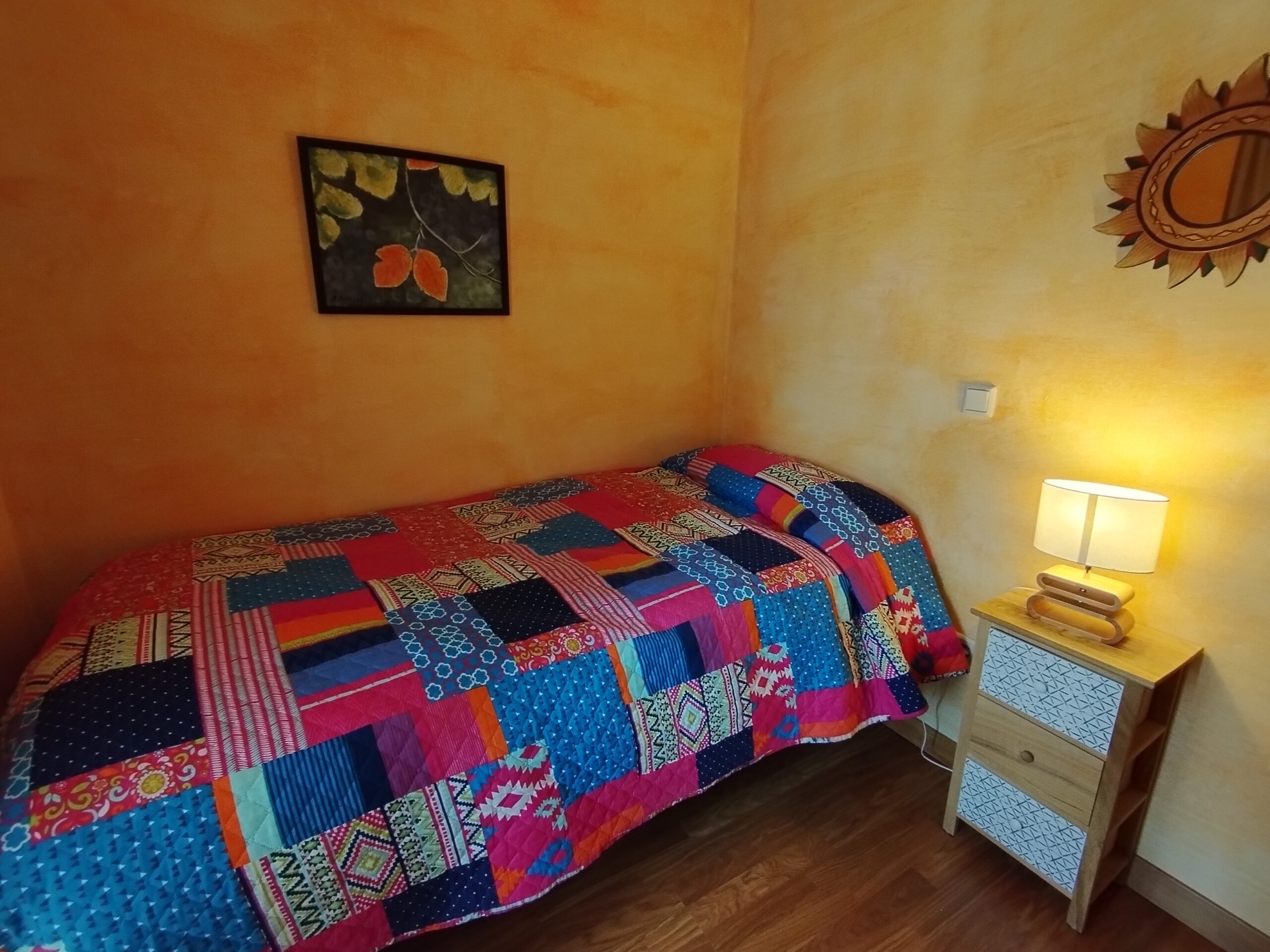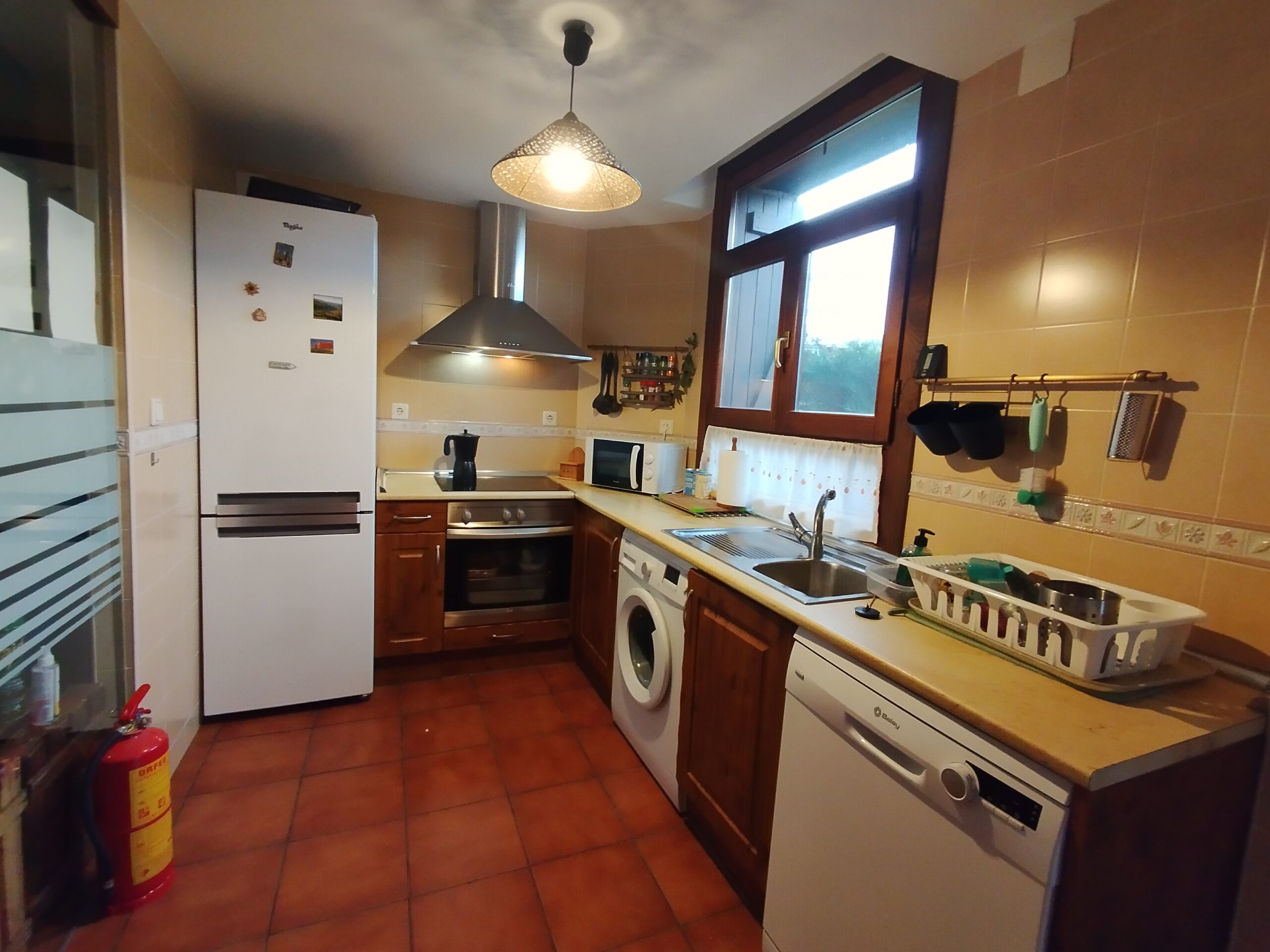 La cocina, comunicada con el salón, tiene una puerta que da acceso al jardín vallado, donde hay una barbacoa y una terraza con mesa para comer al aire libre. Está totalmente equipada con una amplia gama de electrodomésticos y todo el menaje necesario para una estancia cómoda y sin preocupaciones.
