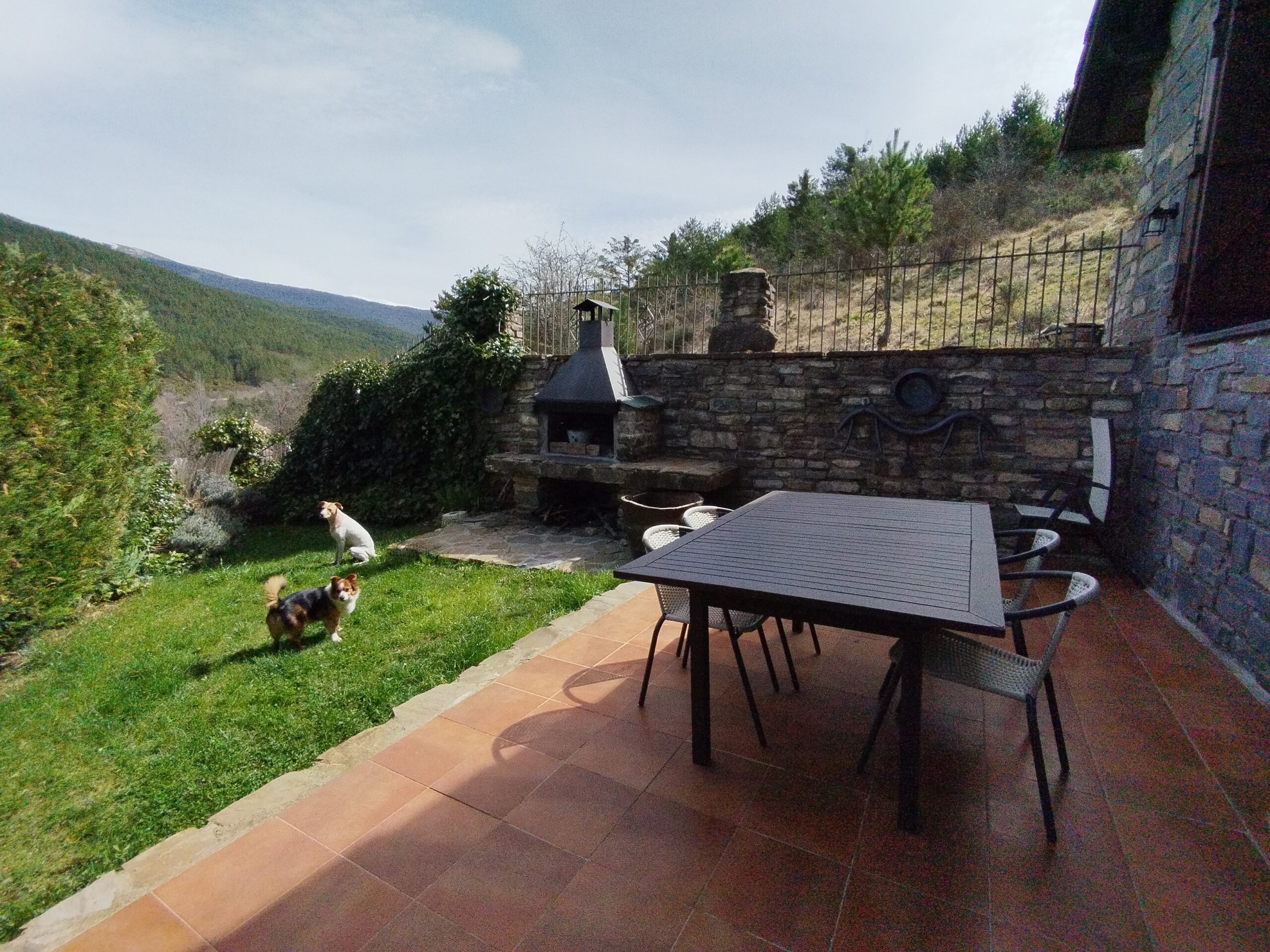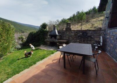 En el exterior, un patio con vistas a la sierra ofrece un lugar perfecto para disfrutar del aire libre. Con una gran barbacoa de piedra y una amplia mesa de madera, los huéspedes pueden disfrutar de deliciosas parrilladas mientras admiran el paisaje de los alrededores.