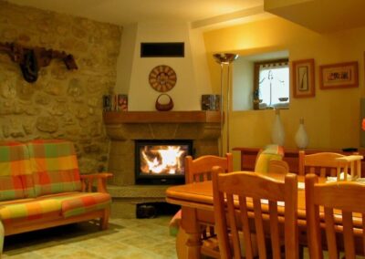 Con capacidad para 8 personas, la casa dispone de 4 amplias habitaciones —dos con camas de matrimonio y cuatro individuales—, además de la opción de incorporar 2 camas supletorias para mayor flexibilidad. Su distribución incluye 2 baños completos, una cocina equipada con todos los electrodomésticos necesarios, un cálido salón comedor con chimenea que invita a compartir momentos en familia, y una acogedora sala de estar para el relax tras un día de aventuras.